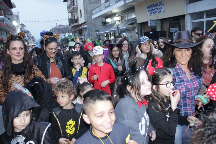 Υπήρχε μεγάλη συμμετοχή μεταμφιεσμένων από μικρά παιδιά αλλά και μεγάλων που έδωσαν χρώμα στην σατιρική θεματολογία των αρμάτων.