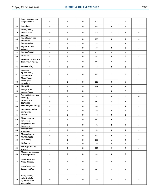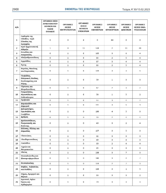 123 θέσεις κληρικών, 2 θέσεις Ιεροκηρύκων, 4 θέσεις διακόνων, 3 θέσεις εκκλησιαστικών υπαλλήλων