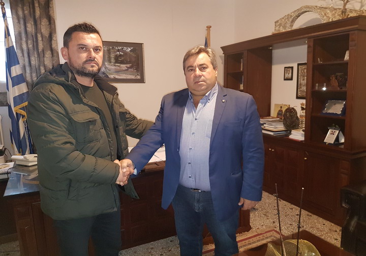 Ο Δήμαρχος Πύλης κ. Κωνσταντίνος Μαράβας καλωσορίζει τον κ. Βησσαρίωνα Τσιώκο λέγοντας: