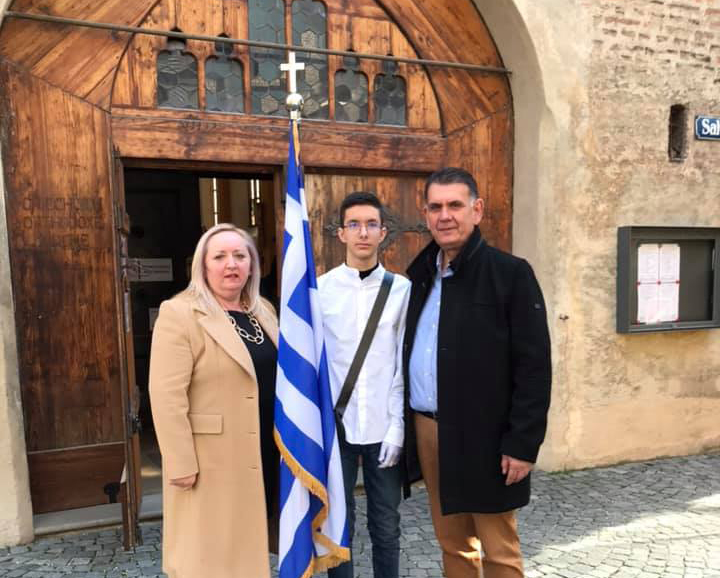 Στη Γερμανία, όπως καταγράφει το trikalavoice.gr ο Τρικαλινός μαθητής Θανάσης Ψαρράς ήταν εκ των σημαιοφόρων κατά τη Δοξολογία που τελέστηκε στον καθεδρικό Ναό του Μονάχου. Οι γονείς του, ο Σήφης Ψαρράς-πρώην πρόεδρος του Συλλόγου Δασκάλων και Νηπιαγωγών ν. Τρικάλων-και η Σοφία Μπουντούρη-επί σειρά ετών ταμίας της ΕΛΜΕΤ-διδάσκουν εδώ και 2 χρόνια στα Ελληνικά σχολεία της πρωτεύουσας της Βαυαρίας, παραμένοντας πιστοί σε ήθη, έθιμα, παραδόσεις.