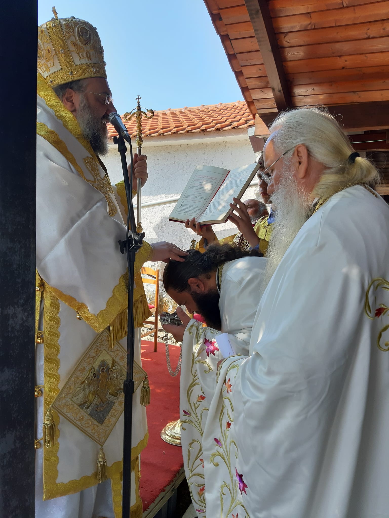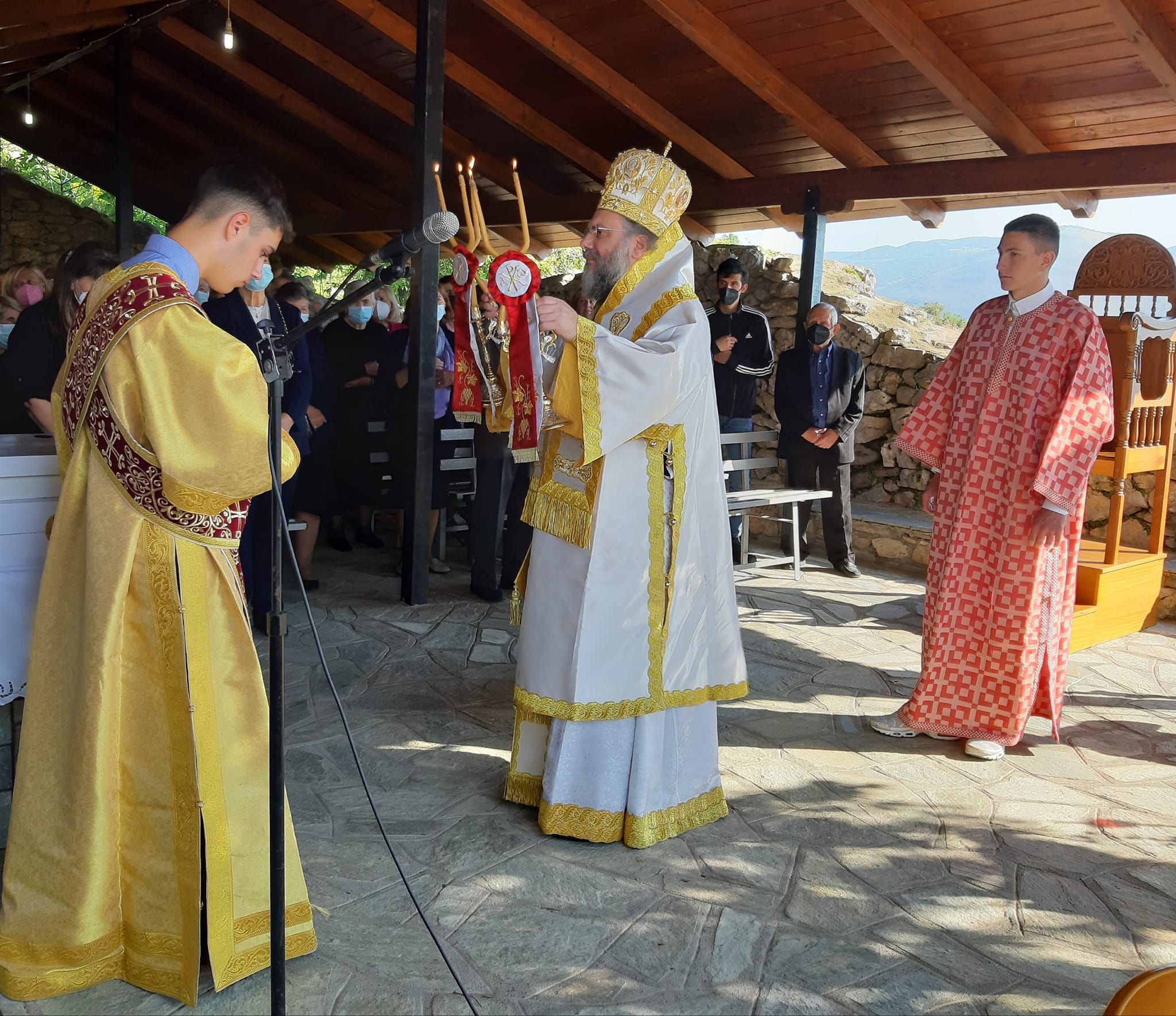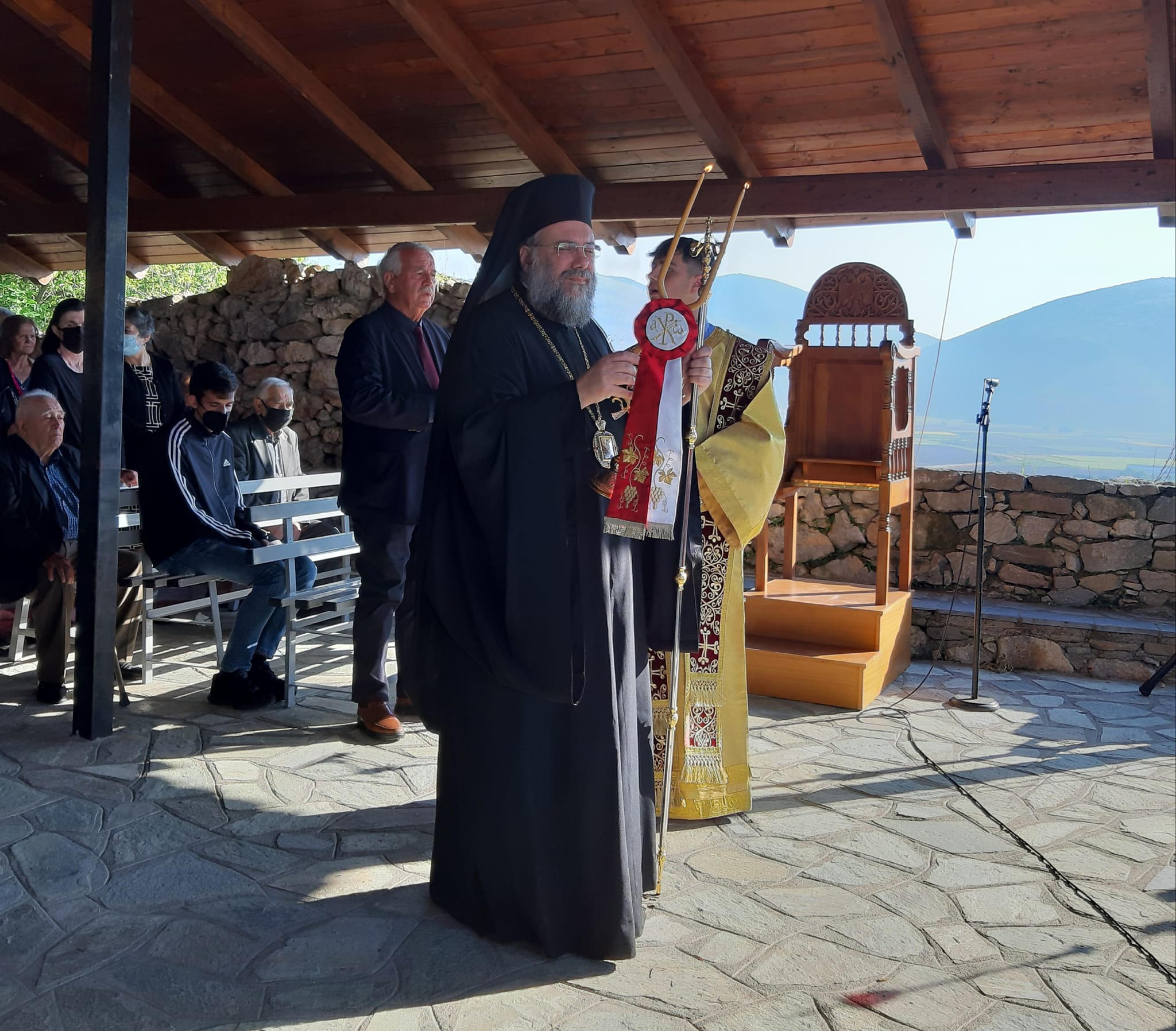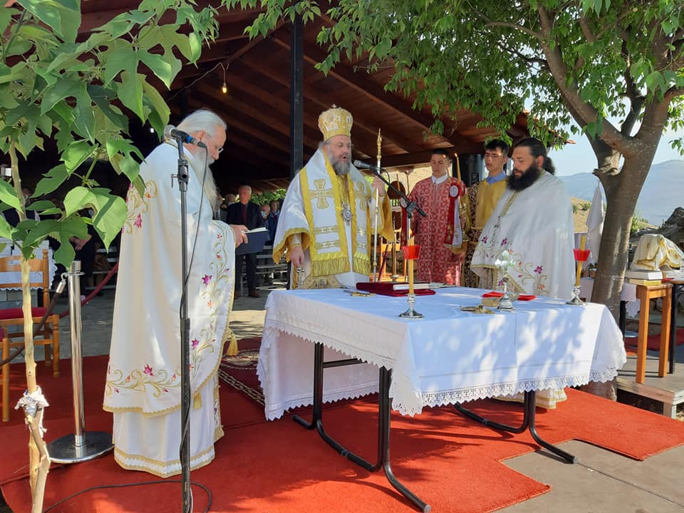 Η Θεία Λειτουργία τελέστηκε ιερουργούντος του Μητροπολίτου Τρίκκης, Γαρδικίου και Πύλης Χρυσοστόμου, ο οποίος προ της απολύσεως χειροθέτησε τον εκεί Εφημέριο π. Γεώργιο Πολυγένη σε Πρωτοπρεσβύτερο.