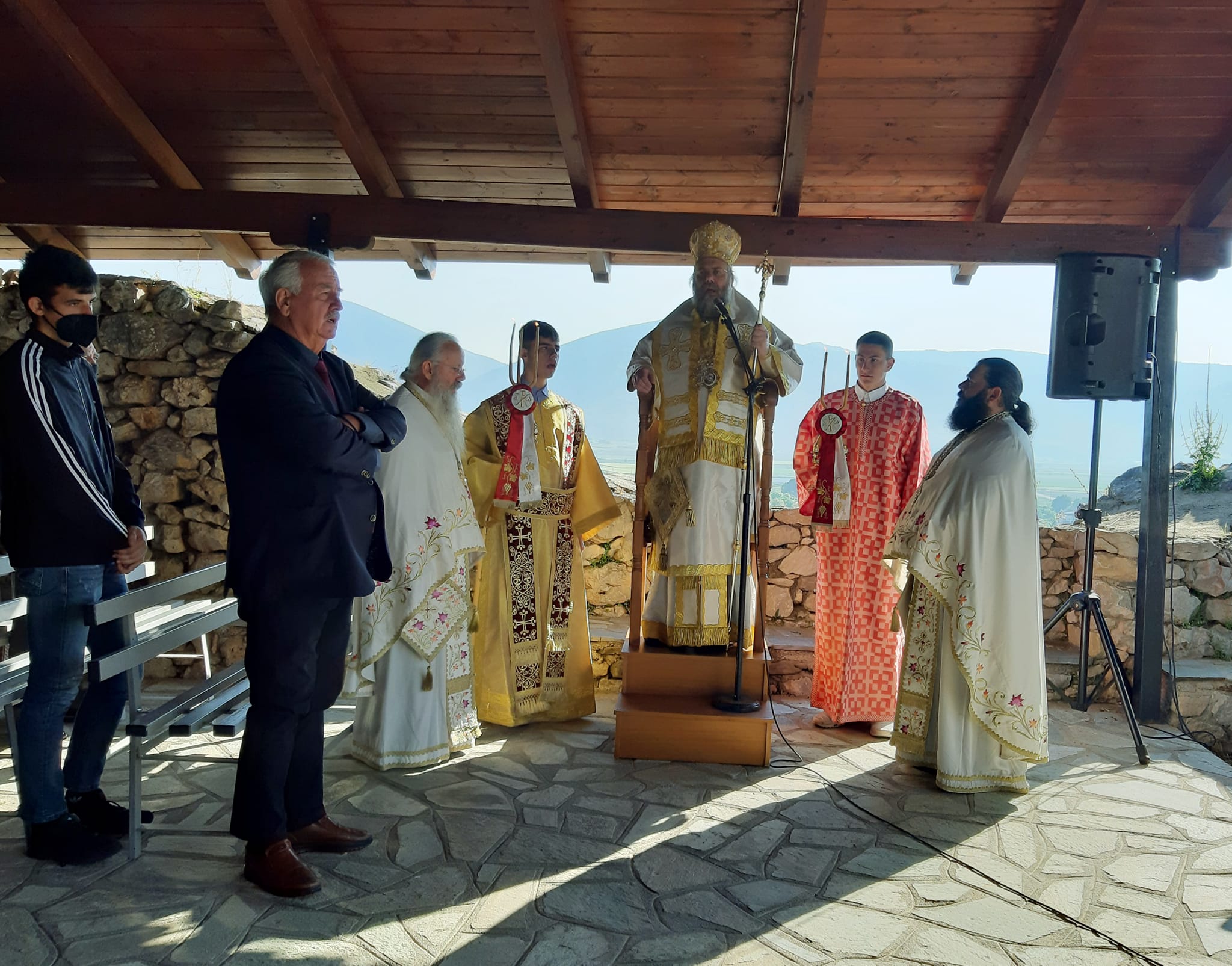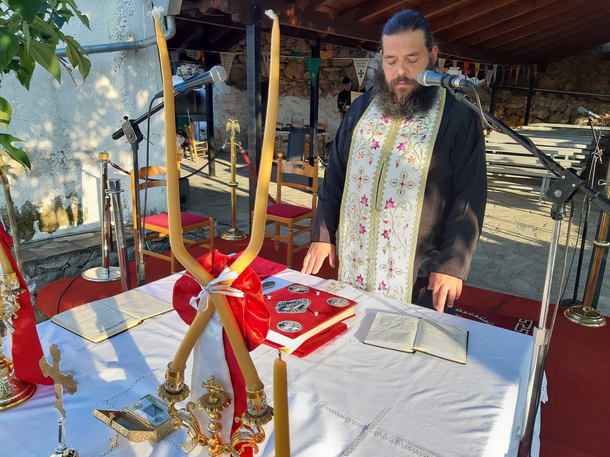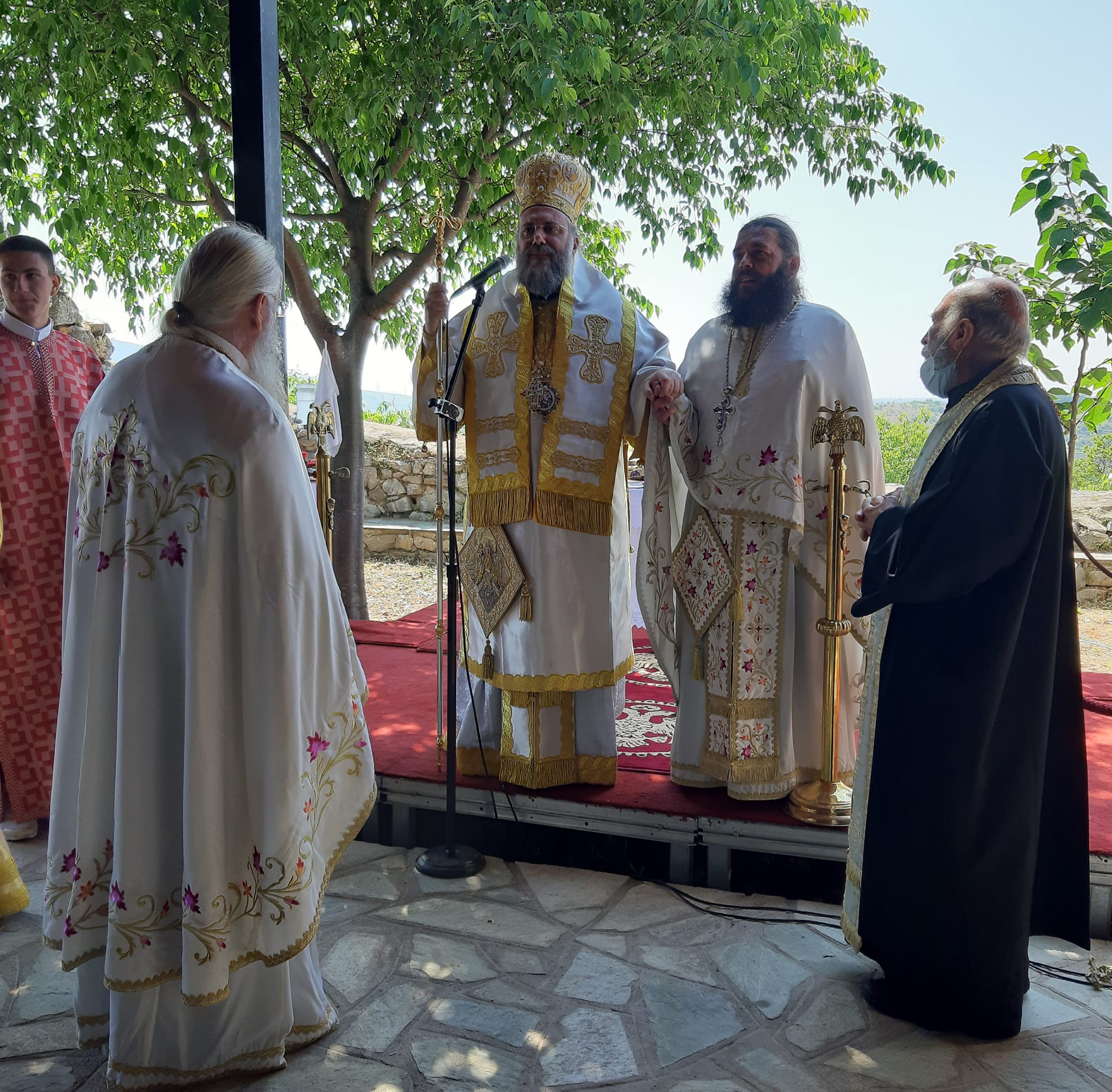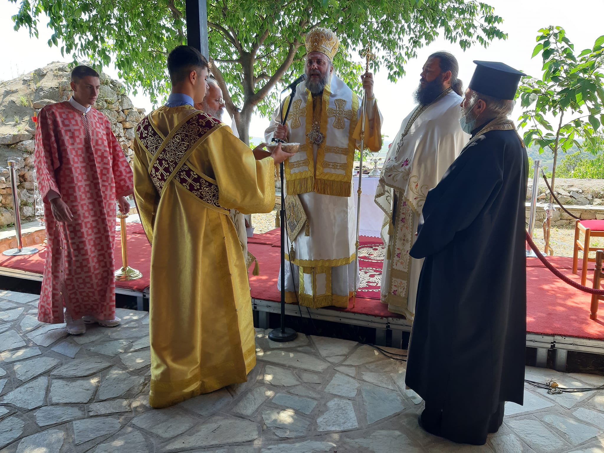 Η Θεία Λειτουργία τελέστηκε ιερουργούντος του Μητροπολίτου Τρίκκης, Γαρδικίου και Πύλης Χρυσοστόμου, ο οποίος προ της απολύσεως χειροθέτησε τον εκεί Εφημέριο π. Γεώργιο Πολυγένη σε Πρωτοπρεσβύτερο.