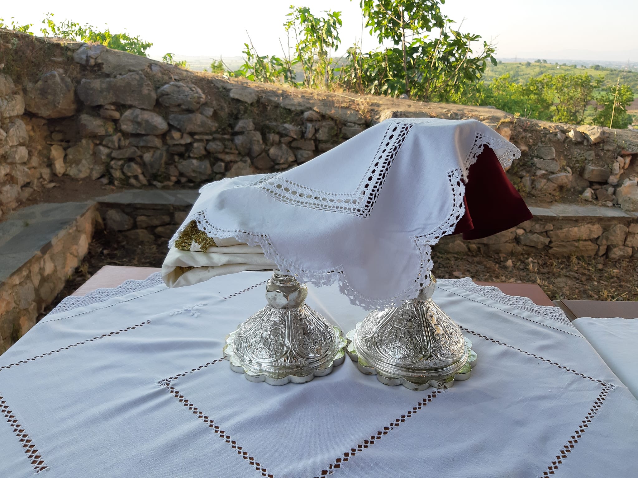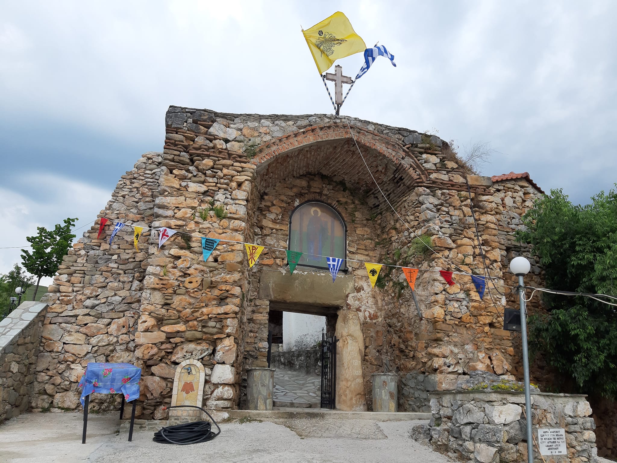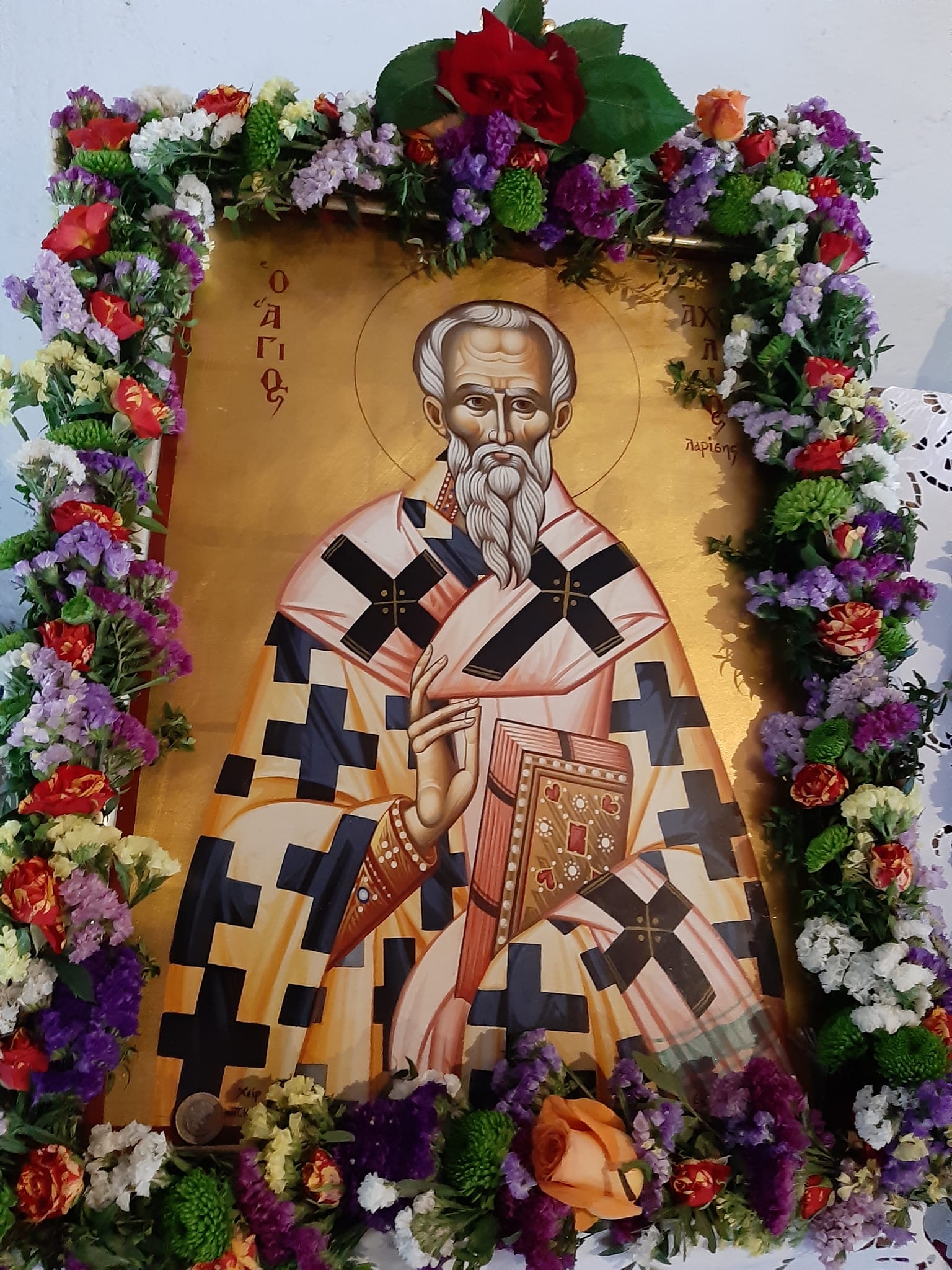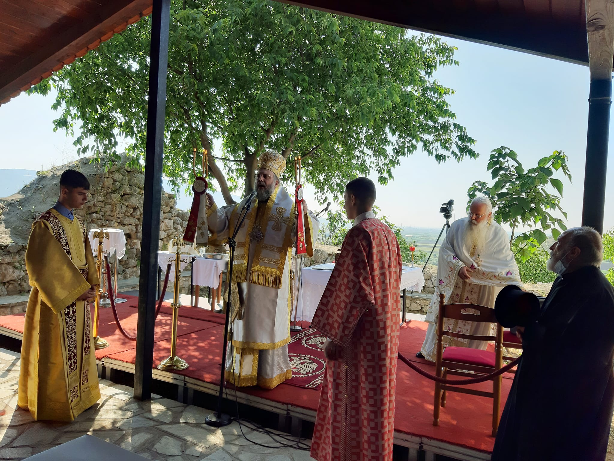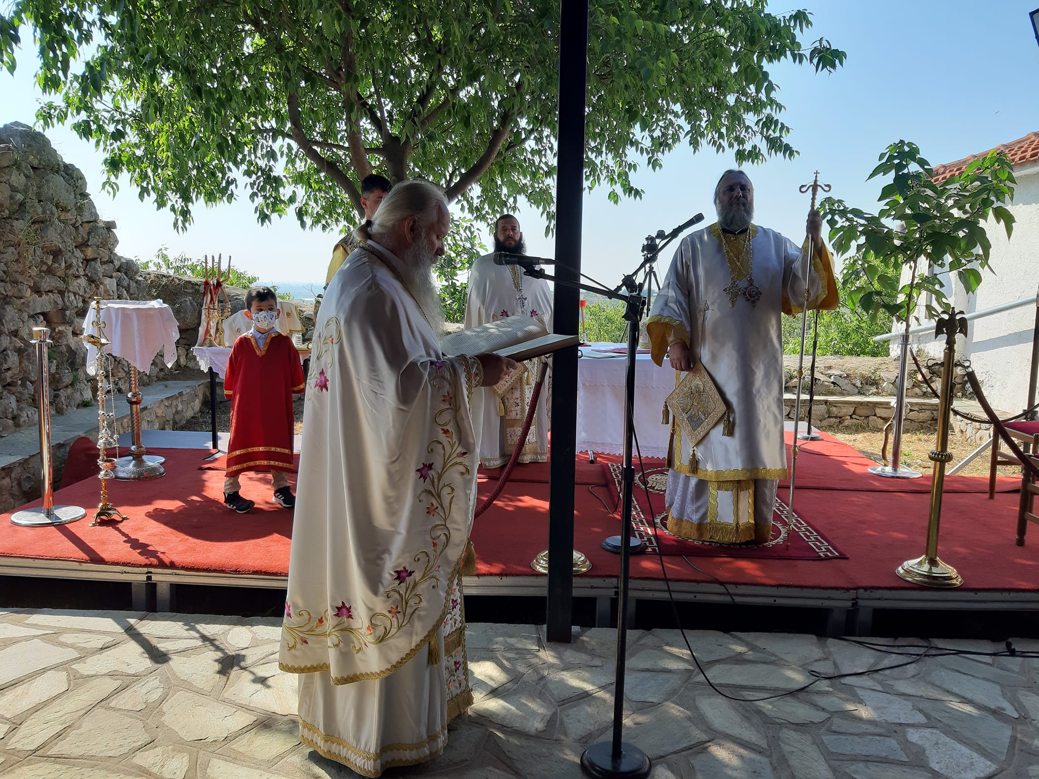 Υπαίθρια Θεία Λειτουργία τελέστηκε το πρωί της Κυριακής 15 Μαϊου, ημέρα κατά την οποία η Εκκλησία μας τιμά τη μνήμη του Αγίου Αχιλλίου, στον αύλειο χώρο του φερώνυμου παλαιού Ναού Παλαιοπύργου.