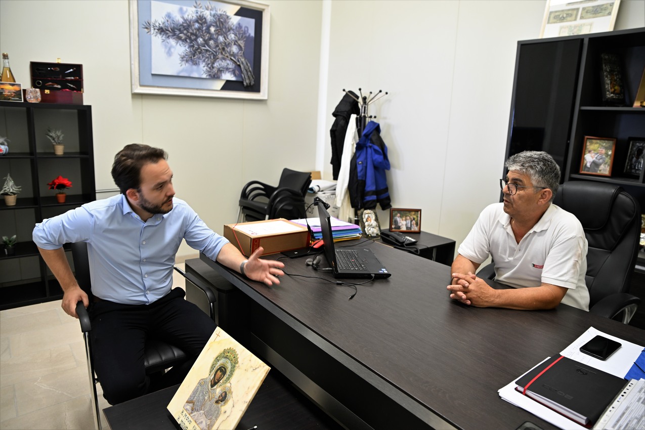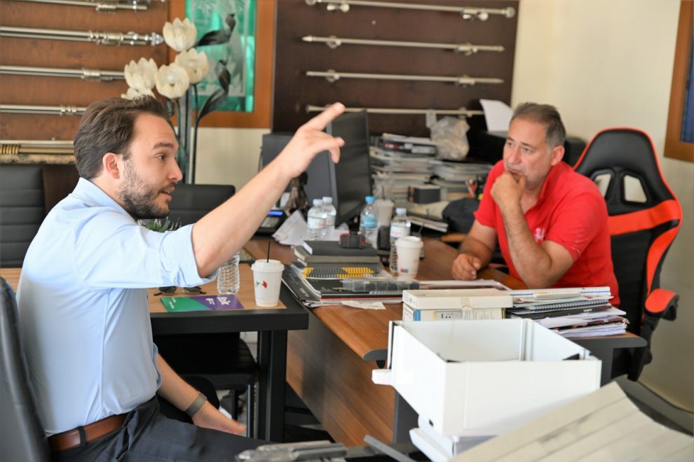 Στο πλαίσιο των επισκέψεων εντασσόταν και η συνάντηση με τον Γιάννη Γκουγκοστάμο, υπεύθυνο της επιχείρησης Σιδηροκατασκευών – Αλουμινίου, έχοντας την ευκαιρία για μια ευρεία συζήτηση γύρω από τα προβλήματα και τις προκλήσεις που αντιμετωπίζει μια μικρομεσαία επιχείρηση.