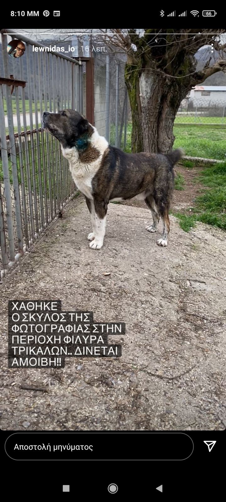 Χάθηκε πριν λίγες μέρες από την περιοχή της Φιλύρας Τρικάλων ο εικονιζόμενος στις φωτογραφίες σκύλος.