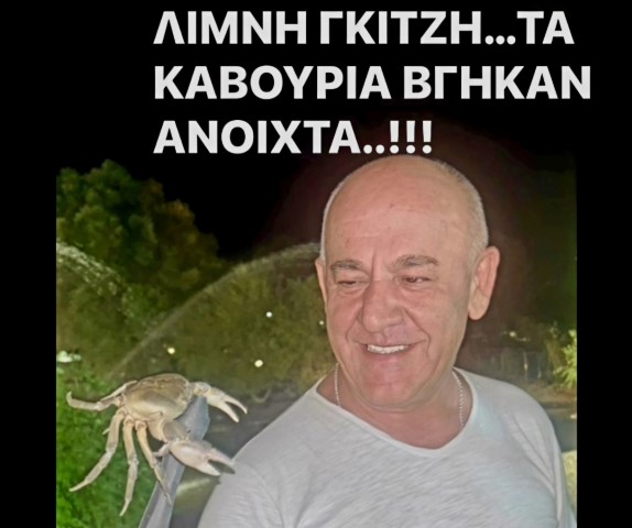 Όπως καταγράφει το trikalavoice.gr τα… καβούρια, μιας και είναι η εποχή τους, πολλαπλασιάστηκαν ραγδαίως και βγήκαν στους δρόμους και στα γύρω σπίτια. Διακρίνεται στη φωτογραφία παραπάνω ο ιδιοκτήτης του Balcone De Lago, στις όχθες της λίμνης, Δημήτρης Καμπλιώνης με ένα από αυτά στα χέρια του.