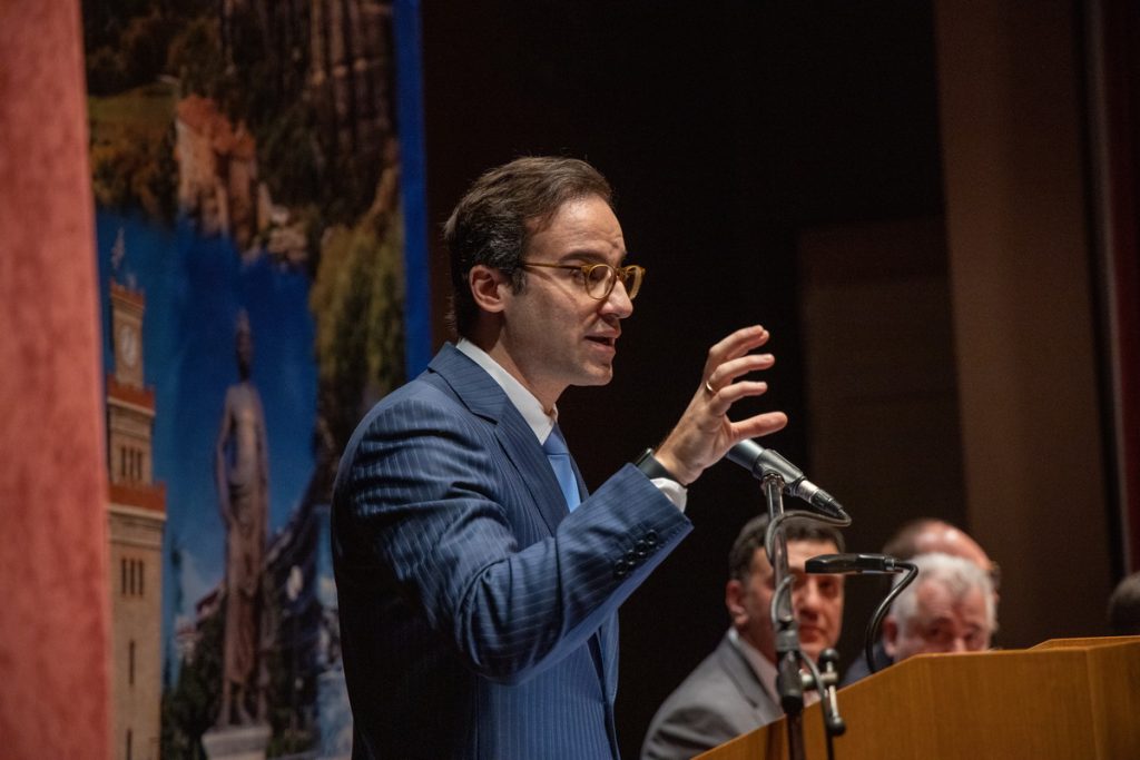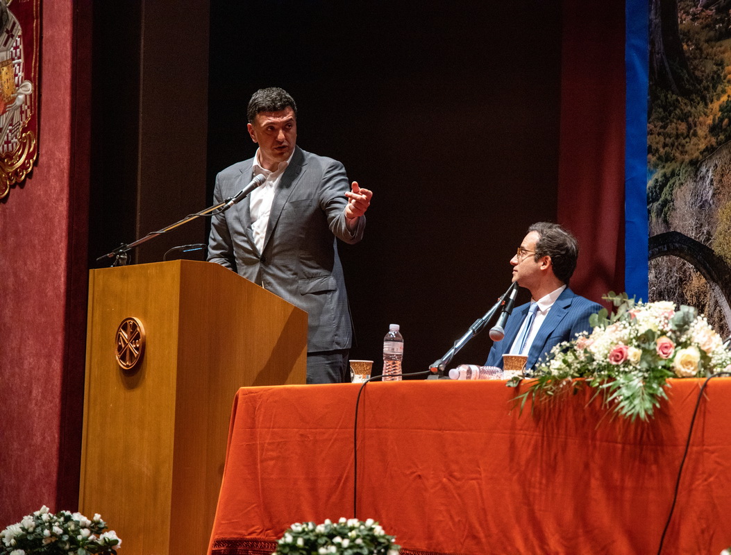 Ευχαρίστησε στον υπουργό Βασίλη Κικίλια, τον συντονιστή Χρήστο Μπεχλιβάνο «κορυφαίο δημοσιογράφο, άνθρωπο με ήθος πάνω απ’ όλα» και τους ομιλητές Παύλο Παπαδημητρίου και Βάιο Κυρίτση «τους οποίους επέλεξα για έναν ακόμα λόγο – εκτός από την εξειδίκευση στον τομέα τους. Τους επέλεξα γιατί ήθελα να δώσω λόγο στην νέα γενιά. Στην γενιά που έρχεται. Στην γενιά που σε λίγα χρόνια θα είναι στο τιμόνι των επιχειρήσεων, είτε μεγάλων είτε οικογενειακών, που θα είναι στο τιμόνι των κυβερνήσεων ανεξαρτήτως κομμάτων».