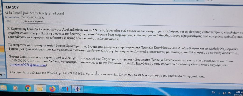 Σε… υποψιασμένο Τρικαλινό επιχειρηματία έπεσαν απατεώνες. Σε e mail που του έστειλαν τον καλούσαν να κάνει “κλικ” σε συγκεκριμένο σύνδεσμο για να του μεταφέρουν-και καλά-1.500.000 δολάρια στον τραπεζικό του λογαριασμό!… Κωμωδία…
