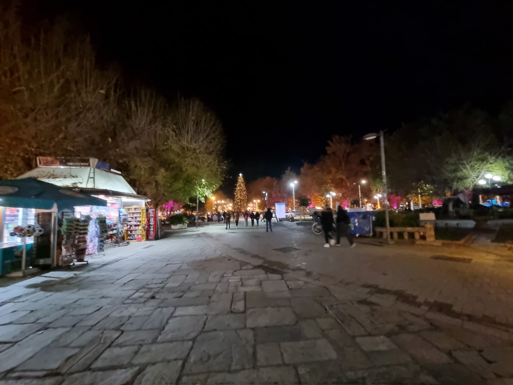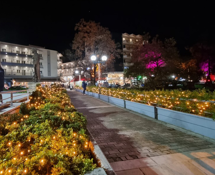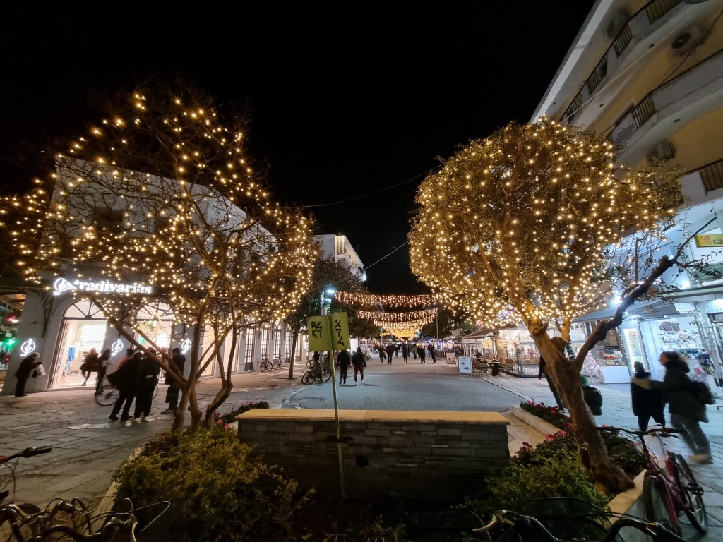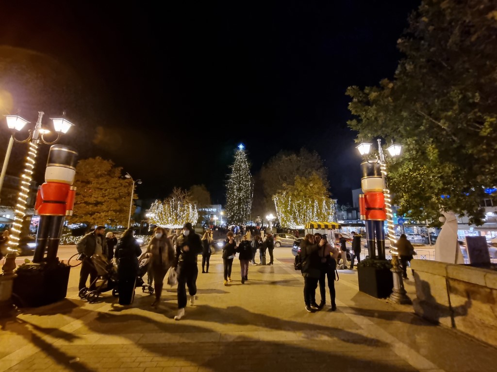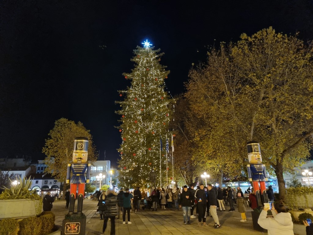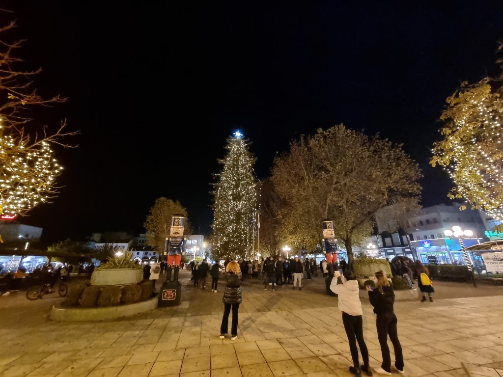 Δίχως τη λάμψη και τα τραγούδια άλλων εποχών άναψε το βράδυ της Τετάρτης το Χριστουγεννιάτικο δέντρο στην πόλη.