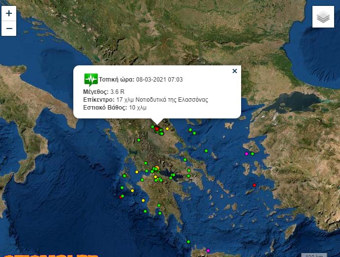 Ωστόσο στις 7.03 π.μ. σημειώθηκε ένας ιδιαίτερα δυνατός μετασεισμός, μεγέθους 3,6 Ρίχτερ και “κούνησε” για τα καλά την πόλη και τα χωριά μας.