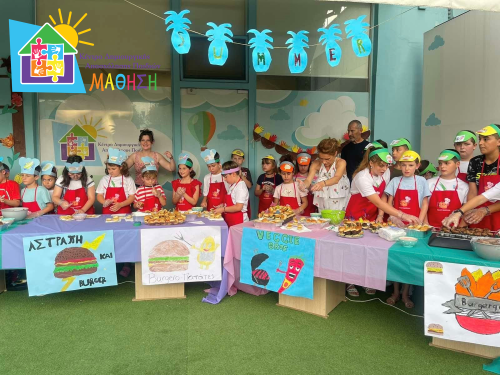 Την Πέμπτη 6 Ιουλίου και ώρα 20:00, στην αυλή του ΚΔΑΠ Μάθηση επί της οδού Τσιτσάνη 86, οι Μικροί Σεφ δημιούργησαν γιορτή γαστρονομίας με θέμα το μπέργκερ. Στη γιορτή, αρχικά, ακούστηκε η κουλτούρα και η ιστορία που το διατρέχουν, έγιναν προτάσεις για υγιεινά μπέργκερ και τέλος όλοι γεύτηκαν τα μπέργκερ από τα καταστήματα των παιδιών. Συγκεκριμένα τα παιδιά σε ομάδες είχαν δημιουργήσει τα δικά τους μικρά καταστήματα, από τα οποία οι καλεσμένοι μπορούσαν να γευτούν φαγητό και ποτό. Τα μαγαζιά είχαν ως εξής : «Kids cocktail» με ένα δροσιστικό κοκτέιλ καλωσορίσματος, «Γλυκιά φαντασία» με μπέργκερ ντόνατς, «Το καλοκαίρι» με μπεργκερ καλαμποκοκεφτέ, «Αστραπή και Burger» με μπέργκερ κοτομπουκιάς, «Burgeroπατάτες» με μπέργκερ πατατοκροκέτας, «Veggie Bros» με μπέργκερ κολοκυθοκεφτέ, «Burgerque» με κλασσικό cheeseburger στα κάρβουνα και τέλος « Fruitpunch» για την χώνεψη! Όλα τα φαγητά, από τα ψωμάκια ως τις σως και τα ποτά ήταν όλα χειροποίητα από τα χέρια των Μικρών Σεφ και την καθοδήγηση των δασκάλων . Να σημειωθεί ότι οι συνταγές εγκρίθηκαν και από την διατροφολόγο της δομής .
