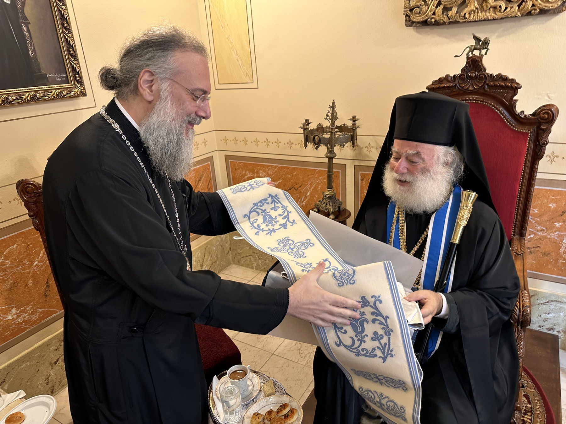 Ο Σεβασμιώτατος Μητροπολίτης Τρίκκης κ. Χρυσόστομος, εκφράζοντας τα αδελφικά του αισθήματα και την ευγνωμοσύνη της τοπικής Εκκλησίας, προσέφερε στον νέο Επίσκοπο αρχιερατική στολή, ενώ στον Μακαριώτατο Πατριάρχη Αλεξανδρείας προσέφερε ως δώρο ευγνωμοσύνης πετραχήλι και ωμοφόριο, φιλοτεχνημένα από την Ιερά Μονή Κοιμήσεως Θεοτόκου Κορμπόβου.Ο Σεβασμιώτατος δοξάζει τον Θεό, που τον αξιώνει να βλέπει πνευματικούς καρπούς της επαρχίας του να συνεχίζουν το ιεραποστολικό έργο της Ορθοδοξίας στα πέρατα της γης, και εύχεται ο νέος Επίσκοπος Ιωακείμ να έχει δύναμη, φώτιση και χάρη εκ Θεού, ώστε να ποιμάνει με αγάπη το ποίμνιο της Ρουάντας, σκορπίζοντας το φως του Χριστού στην Αφρικανική ήπειρο.