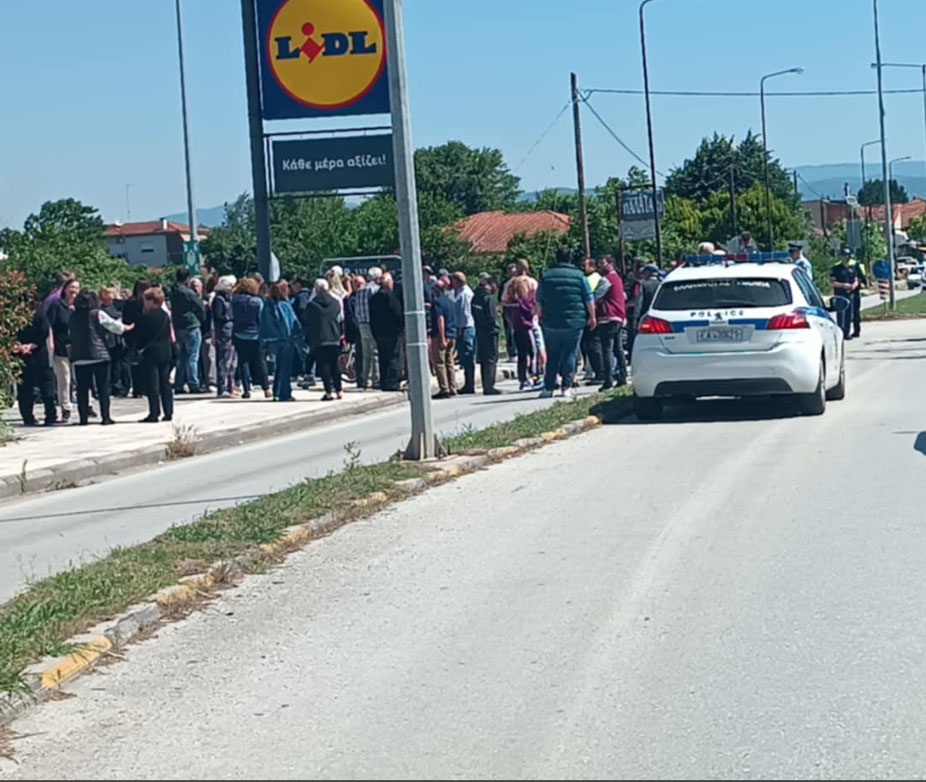 Συγκέντρωση κατοίκων της Αγίας Μονής και των Αμπελακίων το πρωί της Δευτέρας στην οδό Πύλης, στο ύψος του σούπερ μάρκετ LIDL, εκεί όπου σκοτώθηκε προ δεκαημέρου ο 40χρονος Σάκης Βαρσάμης.