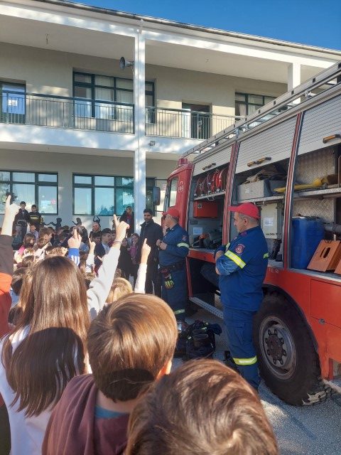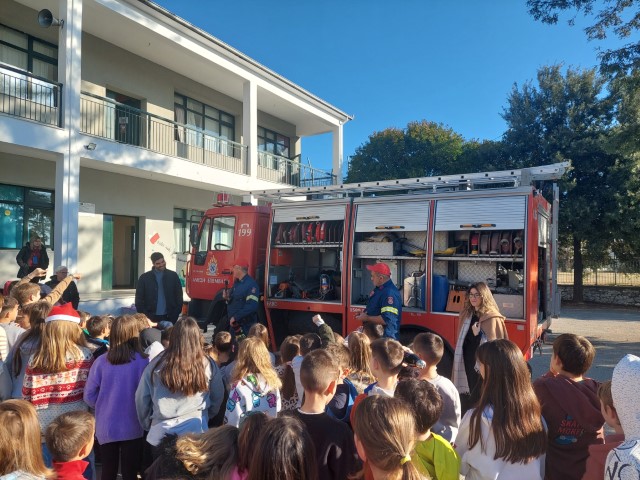Τη Δευτέρα 16 Δεκεμβρίου μια μικρή έκπληξη περίμενε τους μαθητές του σχολείου μας. Η Πυροσβεστική Υπηρεσία Τρικάλων ανταποκρινόμενη άμεσα στο αίτημα του σχολείου μας, για ενημέρωση των μαθητών στο πλαίσιο του άξονα αξιολόγησης σχολικής μονάδας “Σχολείο και κοινότητα” και στο πλαίσιο των εργαστηρίων δεξιοτήτων με θέμα “Τα επαγγέλματα”, βρέθηκε κοντά μας.