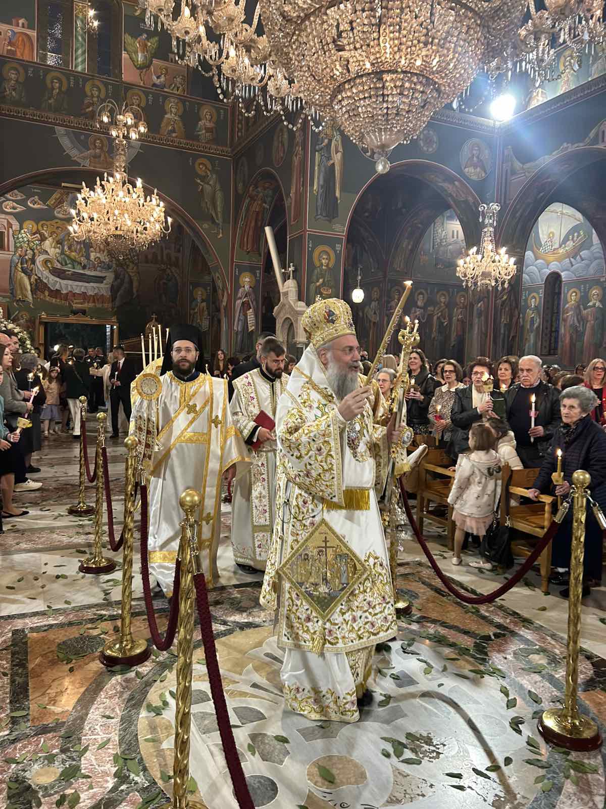 Ακολούθως, κατά την Ακολουθία της Αναστάσεως, χοροστάτησε και ιερούργησε στον ίδιο Ιερό Ναό, μέσα σε κλίμα κατανύξεως και πνευματικής χαράς.
