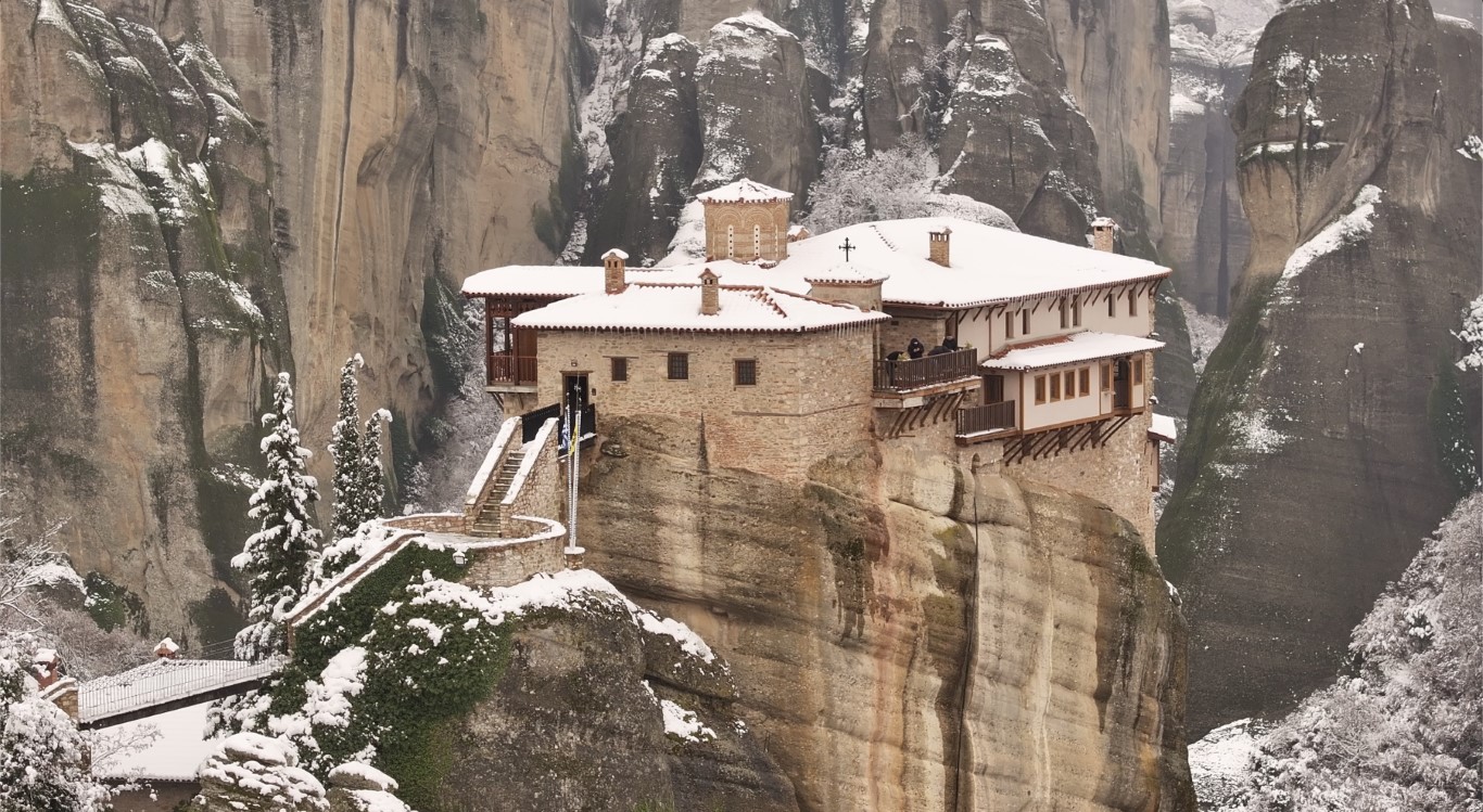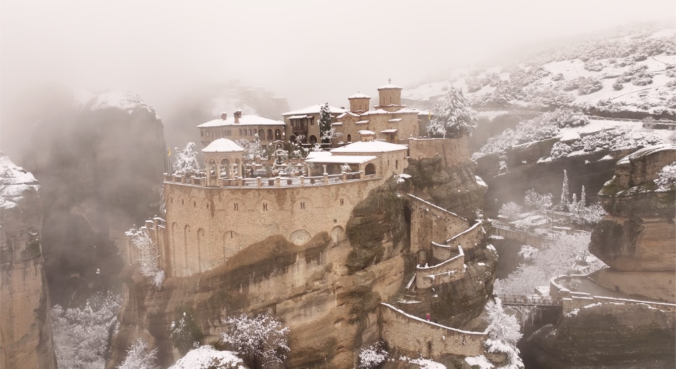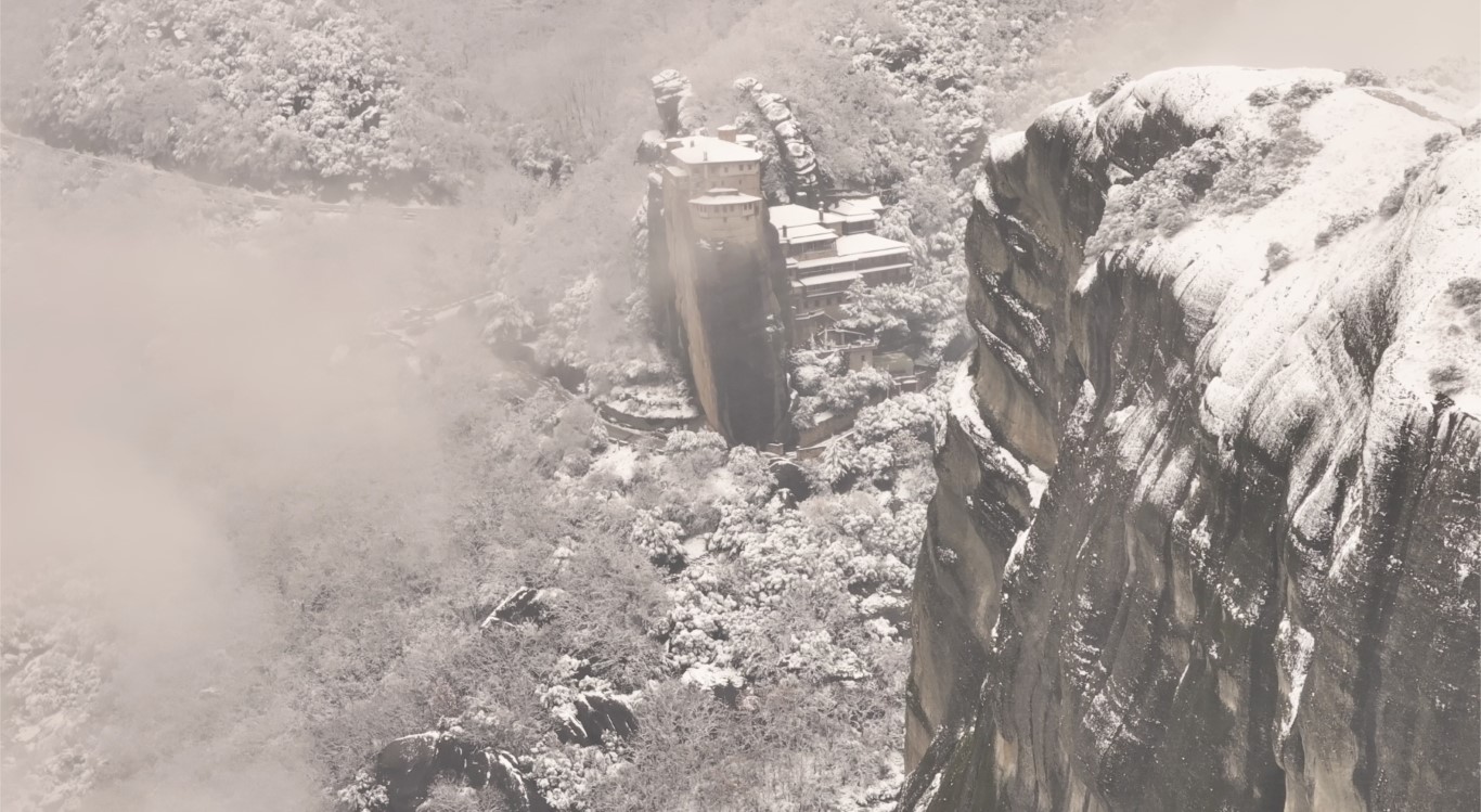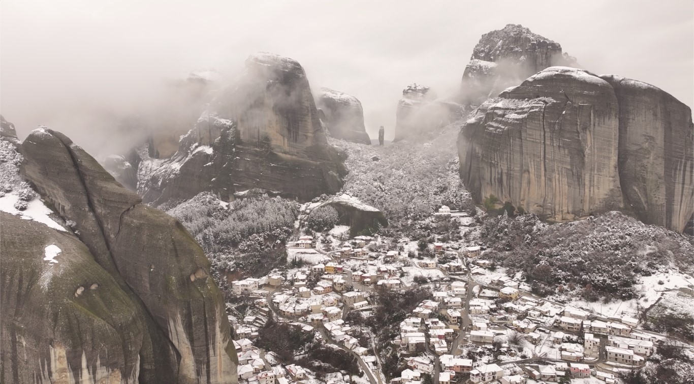 Πετάξαμε με Drone πάνω απ’ τα χιονισμένα Μετέωρα. Απίστευτες εικόνες (video)