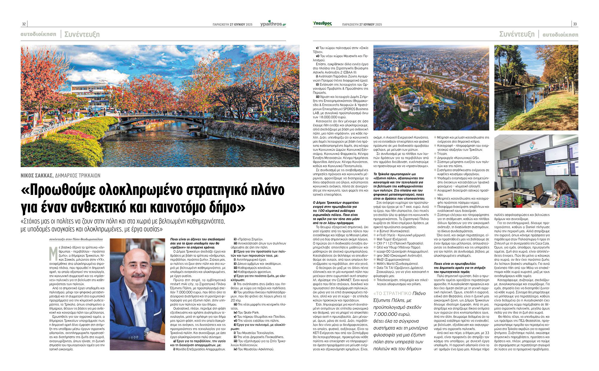 Αναλυτικά η συνέντευξη https://www.ypaithros.gr/nikos-sakkas-dimarchos-trikkaion-proothoume-olokliromeno-stratigiko-plano-gia-enan-anthektiko-kai-kainotomo-dimo/