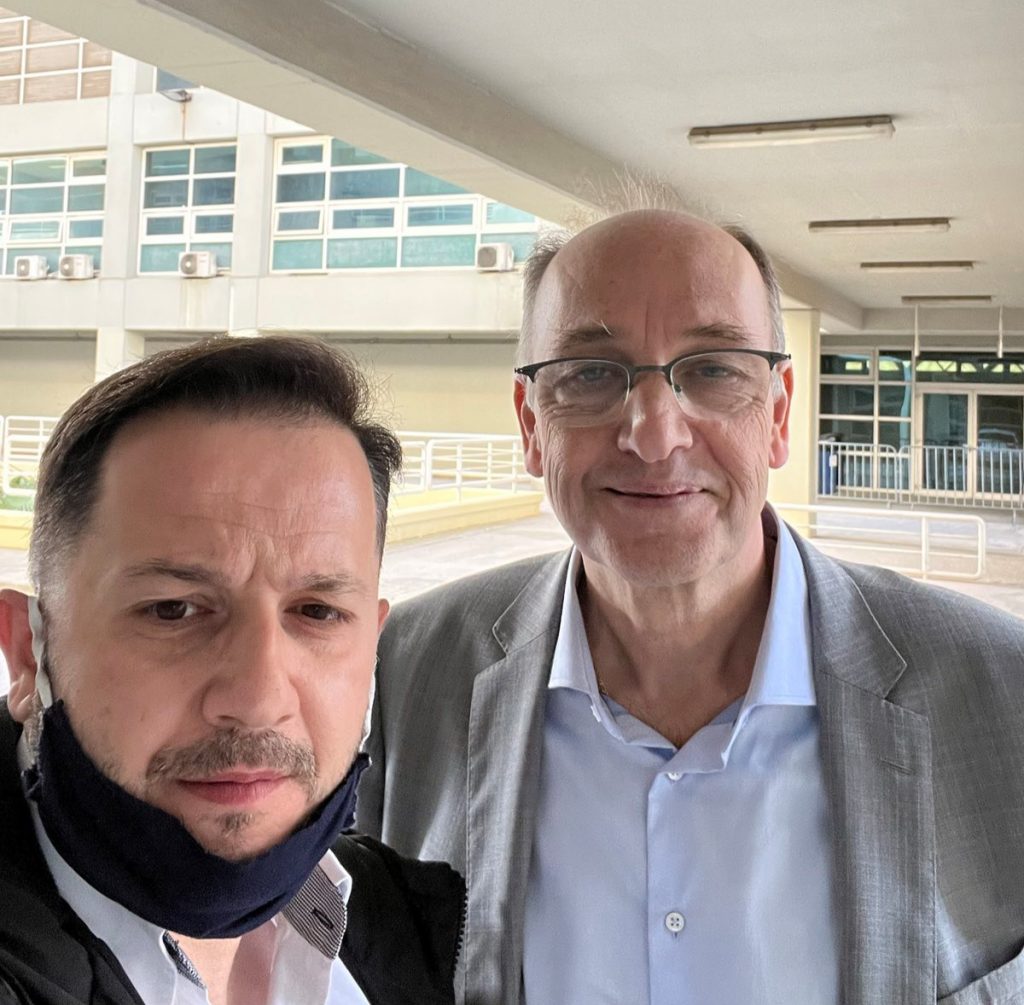 Εκεί είχε και ολιγόλεπτη συνάντηση με τον πρόεδρο της ΕΟΚ κ Βαγγέλη Λιόλιο ο οποίος γνωρίζει πολύ καλά το νέο μεταγραφικό απόκτημα των Ικάρων από την πορεία του με τις Εθνικές ομάδες.