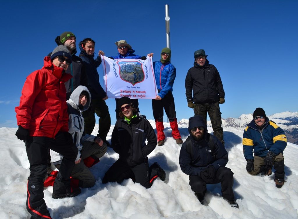 Ακολουθώντας την τελευταία κορυφογραμμή, βλέποντας το στόχο μας στον οποίο δεσπόζει ο μεγάλος μεταλλικός σταυρός φτάσαμε όλοι μαζί στην κορυφή όπου αράξαμε για ρέμβη, φαγητό και ξεκούραση. Η διαύγεια της ηλιόλουστης μέρας μας επέτρεψε να δούμε από τον Όλυμπο, Κίσσαβο, Πιέρια, Σμόλικα, την Κακαρδίτσα, Τζουμέρκα, και όλα τα γειτονικά Αγραφα, και τη λίμνη του Μέγδοβα. Οι κοντινές τριγύρω μας πλαγιές, γυμνές και απόκρημνες στραφταλίζουν από το δυνατό μεσημεριανό ηλιοφώτισμα.
