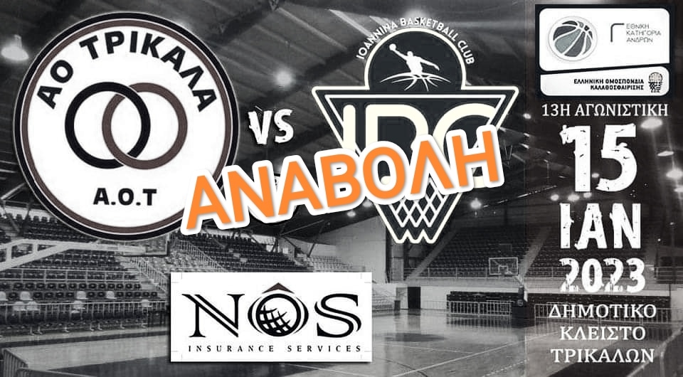 Λόγω κρουσμάτων covid19 ο αγώνας ΑΟ Τρίκαλα – Ιωάννινα ΣΚ για την 13η αγωνιστική του πρωταθλήματος της Γ’ Κατηγορίας ανδρών (4ος όμιλος) και ορίζεται να διεξαχθεί στις 25/1 και ώρα 19:00 στο Δημοτικό Κλειστό Τρικάλων.