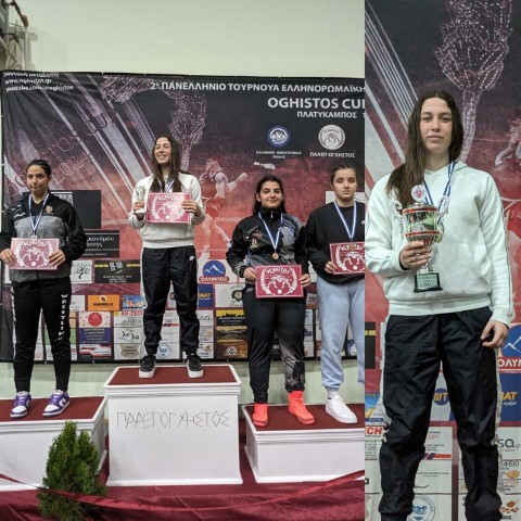 Η αθλήτρια μας Καραγιάννη Λουκία τιμήθηκε από τους διοργανωτές με το κύπελλο και τον τίτλο της καλύτερης αθλήτριας στην κατηγορία των κοριτσιών πραγματοποιώντας 3 διαδοχικές νίκες κατακτώντας το χρυσό μετάλλιο.