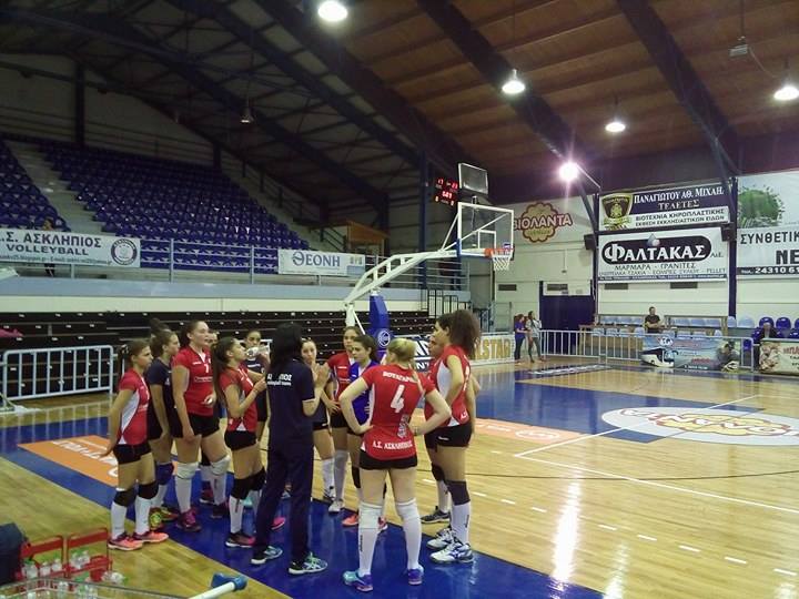 Πήραν το 1ο σετ με 15-25 και με 16-25 το 2ο και συνάντησαν αντίδραση στο 3ο που το πήραν τελικά με 20-25, ενώ δόθηκε η δυνατότητα στην προπονήτρια του Ασκληπιού να μοιράσει τον χρόνο συμμετοχής σε όλα τα κορίτσια και κυρίως στις πιο μικρές από την ομάδα των κορασίδων.