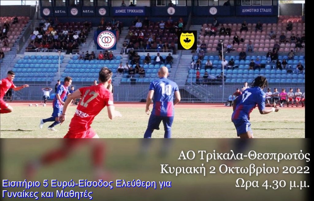 Η διοίκηση του ΑΟ Τρίκαλα αποφάσισε για τη τιμή του εισιτηρίου του φιλικού παιχνιδιού που θα γίνει την Κυριακή 4.30 μ.μ. στο δημοτικό στάδιο Τρικάλων ανάμεσα στον ΑΟΤ και τον Θεσπρωτό.