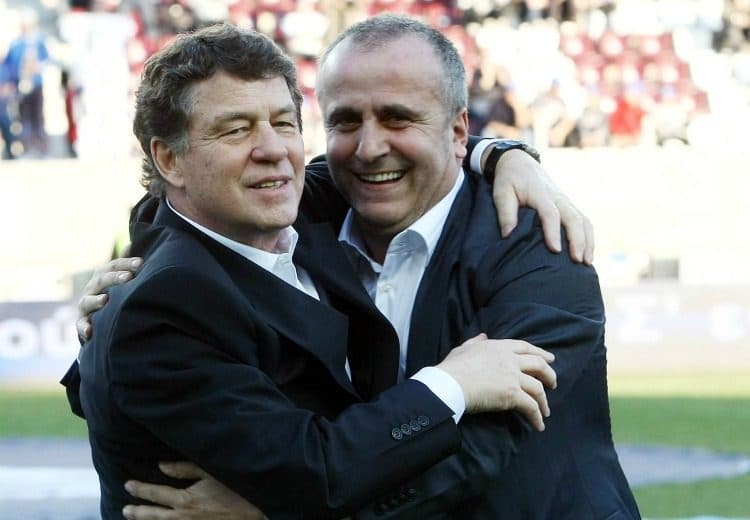 «Με τον Καραγκούνη, συχνά, πολύ συχνά και με τους άλλους όταν ιδωθούμε, ναι. Με τον Γιώργο μιλάμε κάθε μέρα και … όλο για μπάλα, συνέχεια για μπάλα (γέλια)»