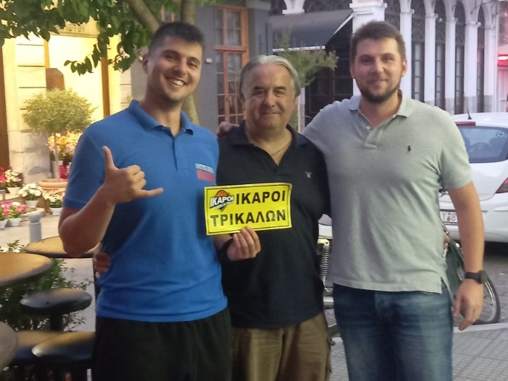 Στην φωτογραφία ο Χρήστος και ο Θανάσης Μπαλωμένος γιοι του παλαίμαχου μπασκεμπολιστα του Σπόρτιγκ Αλέκου Μπαλωμένου και πλέον στυλοβάτες των οικογενειακών επιχειρήσεων μαζί με τον πρόεδρο των Ικάρων Κώστα Σκρέτα.