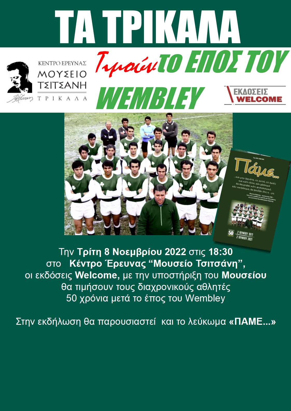 Την Τρίτη 8 Νοεμβρίου 2022 στις 18:30 στο Μουσείο Τσιτσάνη οι εκδόσεις «Welcome» με την υποστήριξη του Μουσείου θα τιμήσουν τους διαχρονικούς αθλητές, 50 χρόνια μετά τον μεγάλο τελικό στο γήπεδο Wembley.