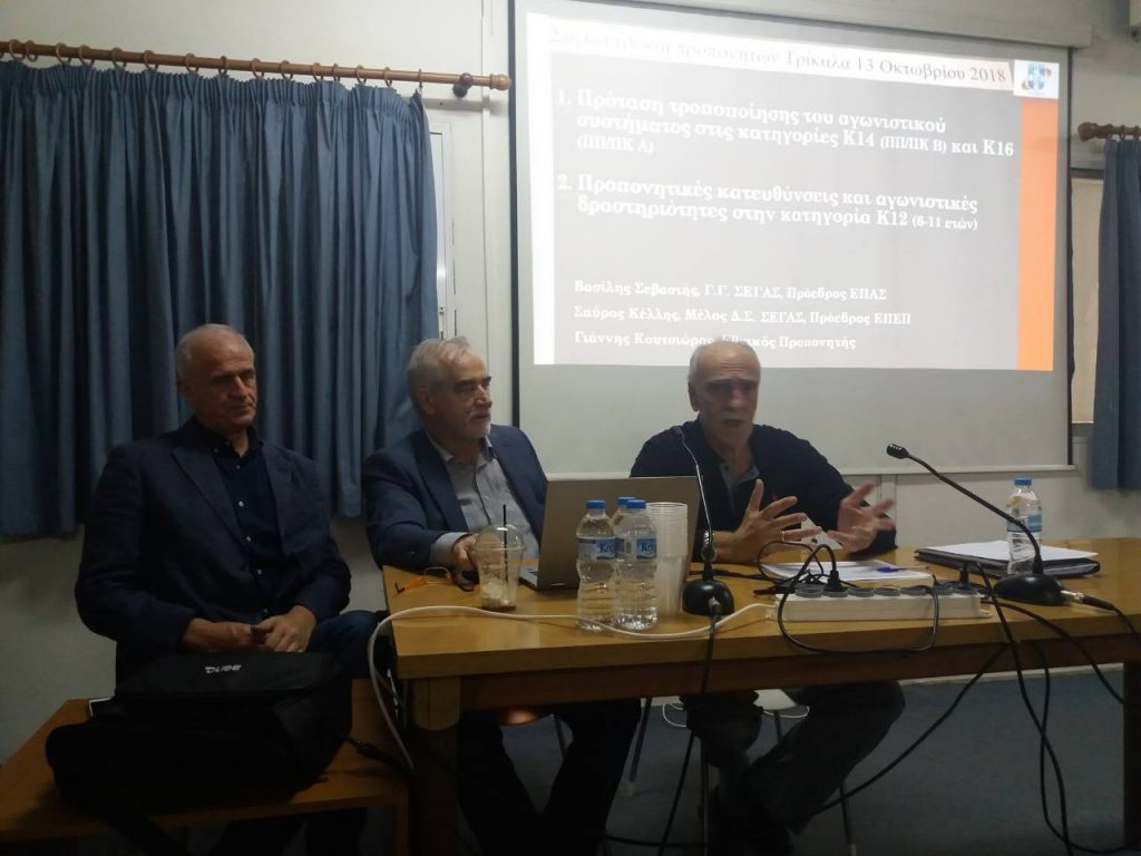 Εκδήλωση με θέμα την τροποποίηση του αγωνιστικού συστήματος στις κατηγορίες Κ14 ππ/πκΒ και Κ16 ππ/πκΑ πραγματοποιήθηκε στις 13 Οκτωβρίου στο Τ.Ε.Φ.Α.Α. Τρικάλων. Η εκδήλωση οργανώθηκε από την ΕΑΣ ΣΕΓΑΣ Θεσσαλίας με την παρουσία του επί σειρά ετών Προέδρου του ΣΕΓΑΣ και τωρινού Γραμματέα κ. Σεβαστή Βασίλη. Την εισήγηση έκανε ο Κοσμήτορας του Τ.Ε.Φ.Α.Α. Θεσσαλονίκης και Πρόεδρος της επιστημονικής επιτροπής του ΣΕΓΑΣ κ. Κέλλης Σπύρος.