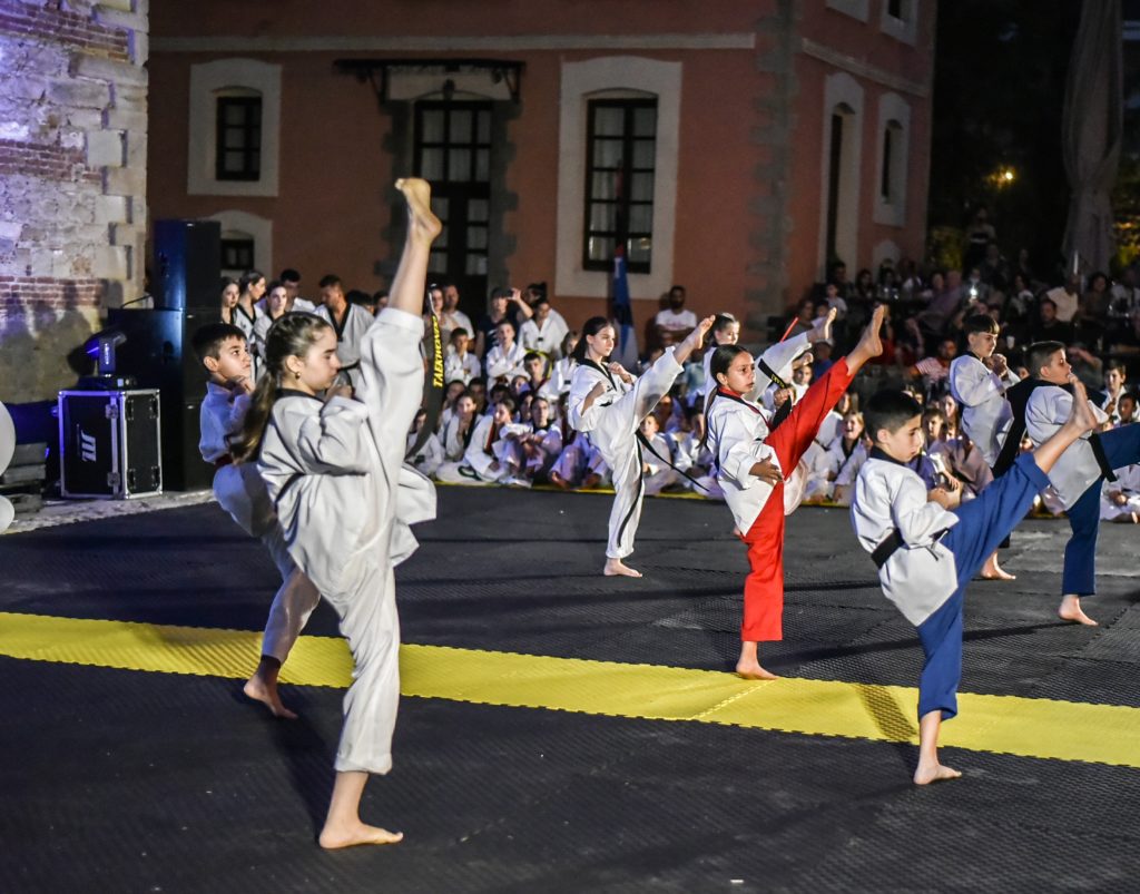 Η εκδηλωση ξεκινησε με τους 200 και πλέον μικρους αθλητές του Συλλόγου οι οποιοι εκτέλεσαν το 2ο μέρος της ύλης των εξετάσεων έγχρωμων ζωνων. Εξεταστές ήταν οι Δακαλοι Απόστολος Ιακωβάκης από την Λάρισα,ο Χρήστος Ντιντιος από τον Τύρναβο,ο Παναγιώτης Φλισκας από την Καρδίτσα,ο Θάνος Παπαπουλης από την Αγια και ο Κώστας Ποζαπαλιδης από τον Βόλο.