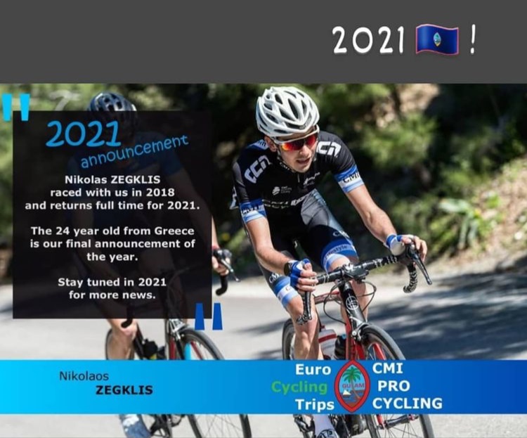 Η ομαδα που θα αγωνιστη ο Ζεγκλης Νικος είναι η Euro Cycling Trips – CMI Pro Cycling και είναι δηλωμενη στην παγκοσμια ομοσπονδια UCI, με το ρόστερ να αποτελείται από 14 αθλητές με εθνικότητες από Γαλλία , Ολλανδία, Γκουάμ , Νέα Ζηλανδία και Αγγλία