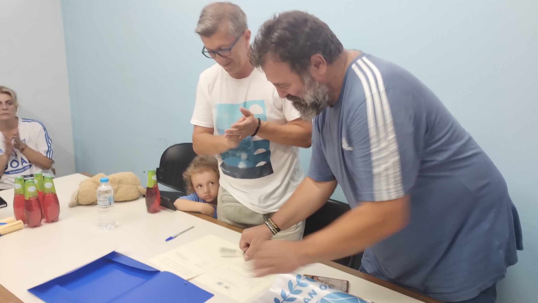 Στη συνέχεια ο Νίκος Παϊρατίδης για τον ΣΟΑΤ και ο Αdem Υakinci αντάλλαξαν βραβεία και υπέγραψαν σύμφωνο αδελφοποίησης των δύο σωματείων.