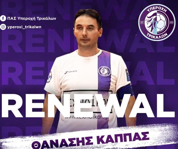 Μάλιστα απ’ ότι πληροφορούμαστε μέσω δελτίο τύπου της Υπεροχής “για μια ακόμη χρονιά θα συνεχίσει να προσφέρει τις υπηρεσίες του στην Υπεροχή Τρικάλων ο Θανάσης Καππάς. Ο έμπειρος αμυντικός και ένας εκ των αρχηγών της ομάδας, αποτελεί έναν από τους πρώτους που πίστεψαν στην προσπάθεια της Υπεροχής από την στιγμή της ίδρυσης της και την στηρίζει ανελλιπώς.
