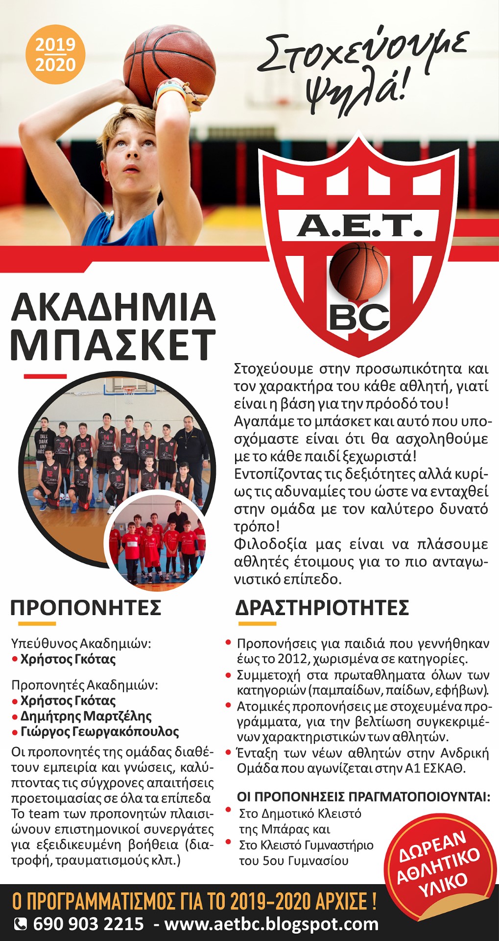 Οι άνθρωποι της Ακαδημίας της ΑΕΤ με την υποστήριξη των γονιών, βάζουν νέους στόχους και ήδη οργανώνουν την Ακαδημία για την νέα σεζόν. Μία σεζόν που θα είναι και πάλι γεμάτη, τόσο από προπονήσεις όσο και από αγωνιστική δράση, αφού τα παιδιά της θα πάρουν μέρος στα πρωταθλήματα όλων των κατηγοριών (μίνι, παμπαίδων, παίδων, εφήβων).