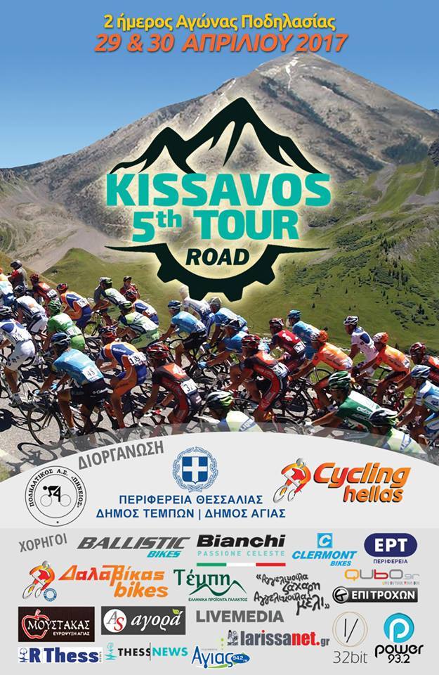 Το Σάββατο και την Κυριακή 29 και 30 Απριλίου 2017 ο ΠΑΣ ΠΗΝΕΙΟΣ, η «Cycling Hellas» , η Περιφέρεια Θεσσαλίας, ο Δήμος Τεμπών και ο Δήμος Αγιάς, συνδιοργανώνουν τον 2 ήμερο διασυλλογικό και ΟΡΕΝ αγώνα με την επωνυμία «5th Kissavos Road Tour 2017» στην πανέμορφη περιοχή του Κισσάβου. Σκοπός της διοργάνωσης είναι αφενός η ανάδειξη του Κισσαβου, των γραφικών χωριών, των παράλιων του Νομού Λάρισας αφετέρου, η ανάδειξη και προώθηση του αθλήματος της ποδηλασίας σε όλες τις ηλικίες.
