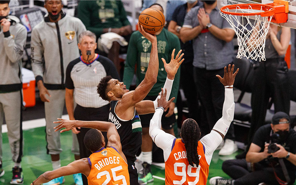 Ο Έλληνας σούπερ σταρ με 50 πόντους αποτέλεσε τον μεγάλο ηγέτη των «Ελαφιών» και στο 6ο και τελευταίο παιχνίδι της σειράς των τελικών απέναντι στους Φοίνιξ Σανς και έβαλε περήφανα την υπογραφή του στο τελικό 105-98.