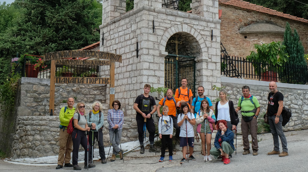 Στο ψηλότερο σημείο του χωριού βρίσκεται η εκκλησία της Κοίμησης της Θεοτόκου. Δίπλα της τοο καφενείο του χωριού όπου θα ξεκουραστούμε για λίγο πρίν πάρουμε τον δρόμο της επιστροφής.