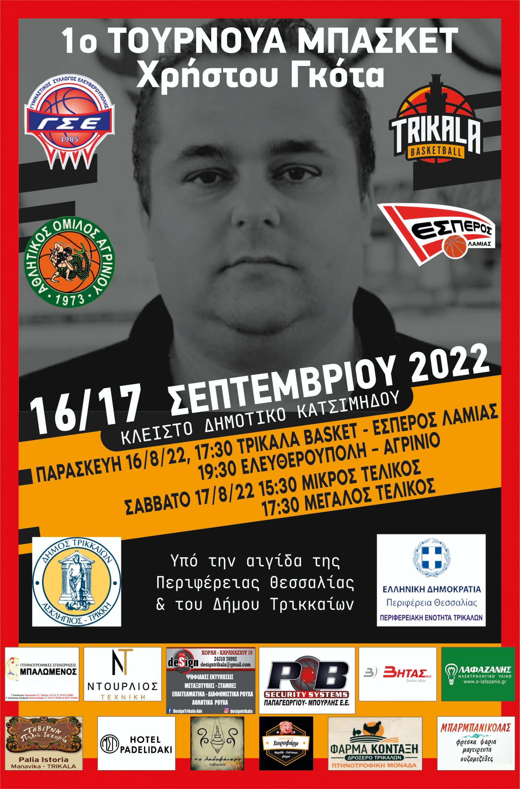 Τα Trikala Basket τιμώντας τη μνήμη του Χρήστου Γκότα, διοργανώνουν το 1ο Τουρνουά Μπάσκετ στη μνήμη του αδικοχαμένου προπονητή ο οποίος έφυγε από την ζωή σε ηλικία 49 χρόνων.