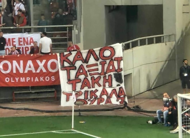 Στον τελικό του Conference League ο Ολυμπιακός. Πανό για τον Τάκη Παπαγεωργίου στο “Καραϊσκάκης”