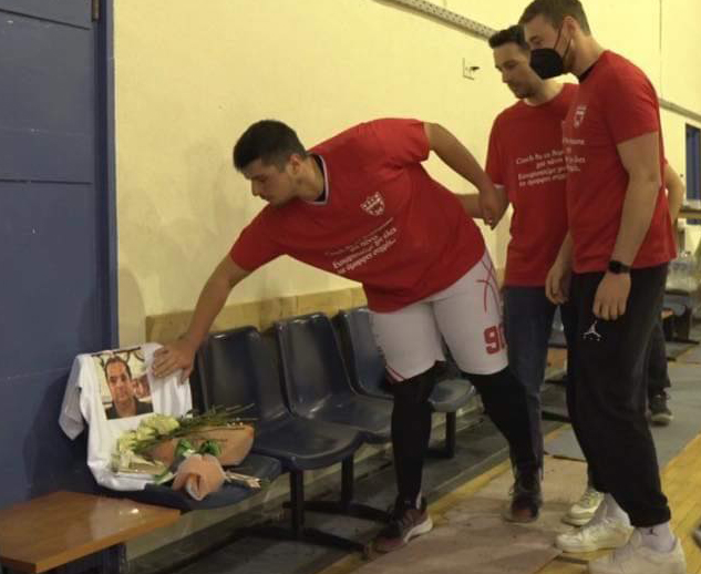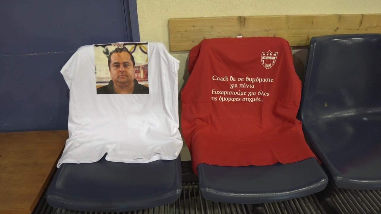 Στη θέση του, στην άκρη του πάγκου, άφησαν μια φανέλα που είχε το πρόσωπό του και οι παίκτες εναπόθεσαν λουλούδια. Κρατήθηκε ενός λεπτού σιγή στην έναρξη του ματς με αντίπαλο τον Γ.Σ. Βόλου, ενώ η νίκη της ΑΕΤ (82-70) αφιερώθηκε στον κόουτς. Δείτε το βιντεάκι που ετοίμασαν οι παίκτες του: