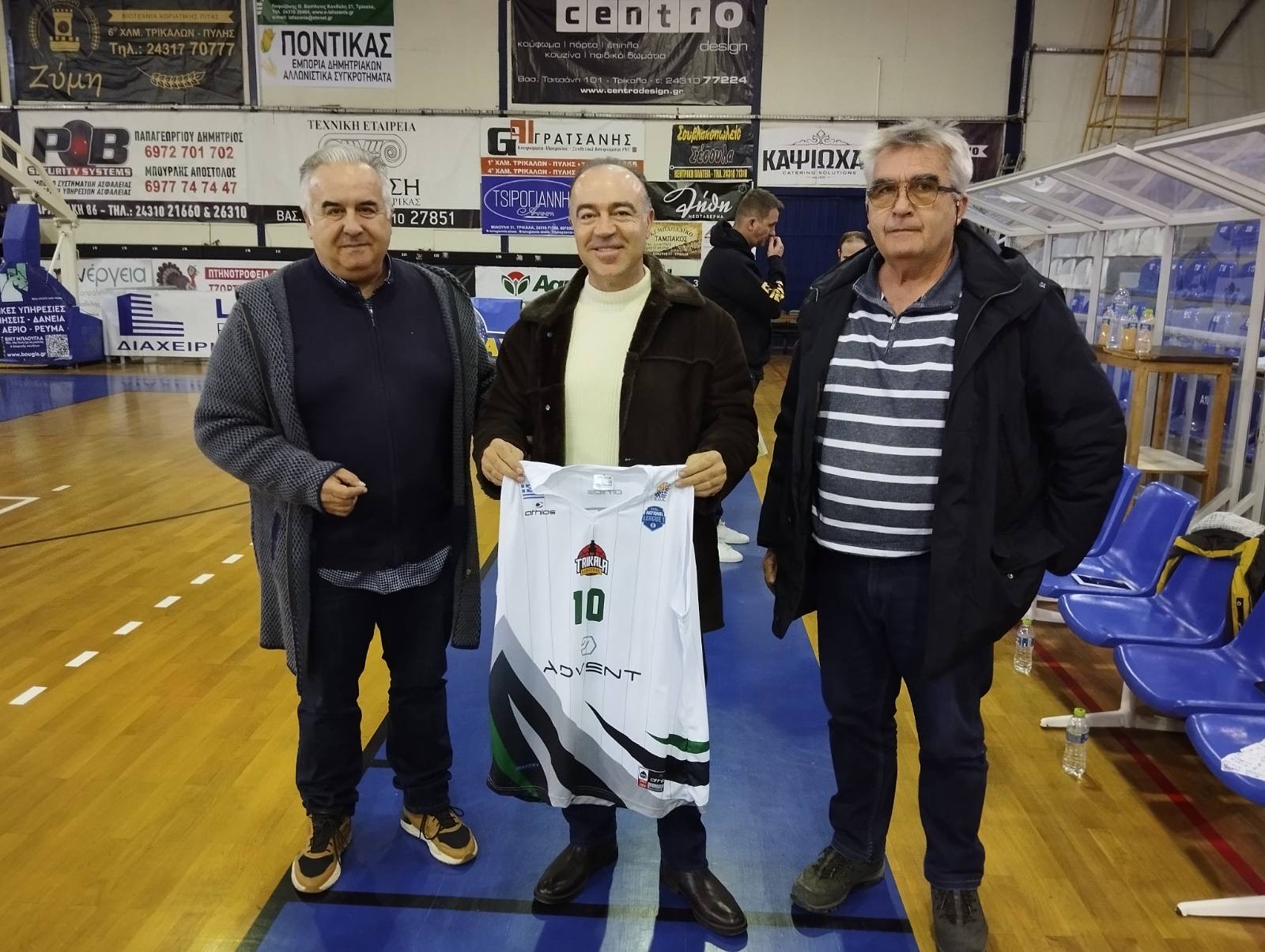 Τη νέα φανέλα της ομάδας trikala basket δώρισαν ο πρόεδρος Σκρέτας Κωνσταντίνος και το μέλος και υποστηρικτής της ομάδας Γκέκας Γιώργος στον μεγάλο χορηγό της ομάδας Γρηγορίου Βασίλη (ιδρυτής και διευθύνων σύμβουλος της Advent Technologies)