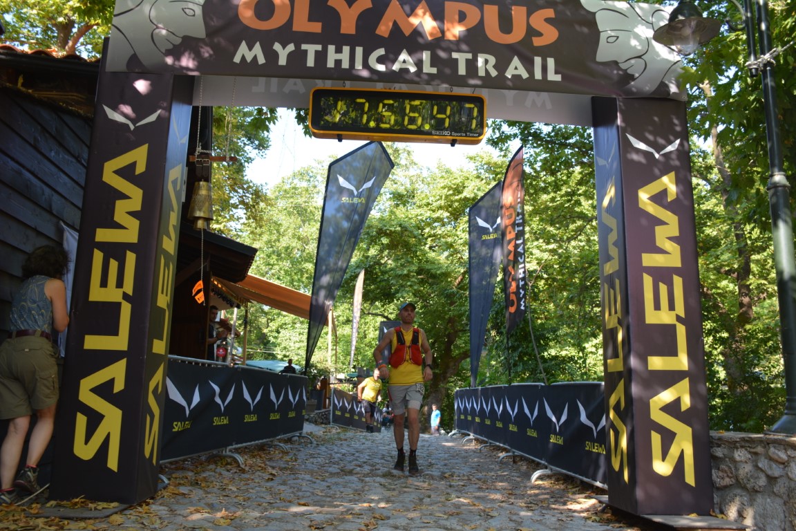 Ο «Salewa Olympus Mythical Trail» είναι ένας απαιτητικός αγώνας 100 χιλιομέτρων που έχει το ξεχωριστό προνόμιο να απλώνει την διαδρομή του «στο βουνό των θεών», τον Όλυμπο, περιτρέχοντάς τον, σ’ ένα μεγάλο κομμάτι του από άγνωστα κύριως μονοπάτια και σε υψόμετρα που αντιπροσωπεύουν το σύνολο του βουνού από τους πρόποδες μέχρι τις κορυφές. Έχει θετική υψομετρική διαφορά 6700 μέτρα, ελάχιστο υψόμετρο 270 μέτρα και μέγιστο 2911 μέτρα (Σκολιό, η 2η ψηλότερη κορυφή της Ελλάδος). Η διαδρομή έχει κοινό σημείο εκκίνησης και τερματισμού και κινείται 92% σε μονοπάτια και 8% σε χωματοδρόμους. Έχει χρονικό όριο εγκυρότητας τερματισμού τις 28 ώρες με ενδιάμεσους χρονικούς αποκλεισμούς τις 7 ώρες στα 24χιλιόμετρα και τις 17 ώρες στα 69 χιλιόμετρα.