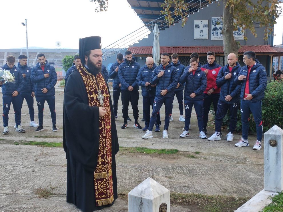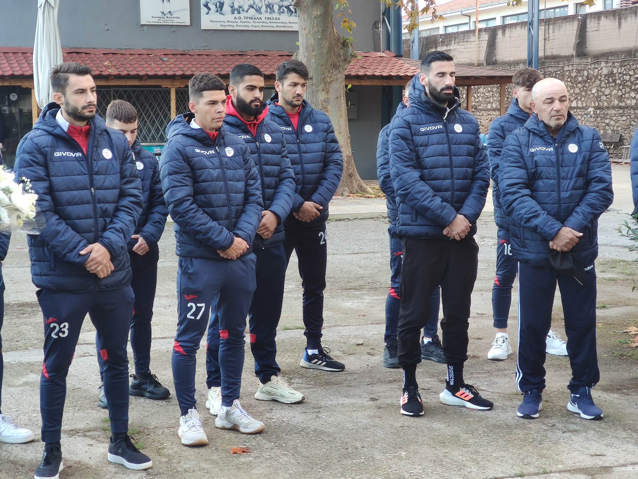 Στο χώρο που υπάρχει και το εικονοστάσι και οι φωτογραφίες τους ο Πρωτοσύγκελος της Ιεράς Μητρόπολης Τρίκκης, Γαρδικίου και Πύλης Αρχιμανδρίτης Αλέξιος Κανίνας τέλεσε το τρισάγιο. Παραβρέθηκε ο πρόεδρος του ΑΟ Τρίκαλα Κώστας Παρδάλης, σύσσωμο το ποδοσφαιρικό τμήμα και στην συνέχεια έγινε η αναχώρηση για την Ζάκυνθο.