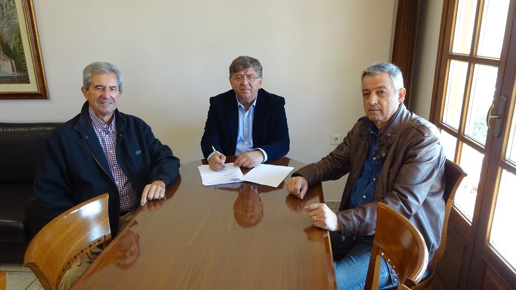 Σε συνάντηση που είχε ο Δήμαρχος Μετεώρων κ. Χρήστος Σινάνης, με τον πρόεδρο της εταιρίας ΑΛΦΑΕΡΓΟΣΠΟΡ Α.Ε., κ. Ιάσωνα Γκαζιάνη, υπογράφηκε η σύμβαση μεταξύ του Δήμου Μετεώρων και της αναδόχου τεχνικής κατασκευαστικής εταιρίας, για την υλοποίηση του έργου «Κατασκευή Ταρτάν στο Δημοτικό Στάδιο Καλαμπάκας».