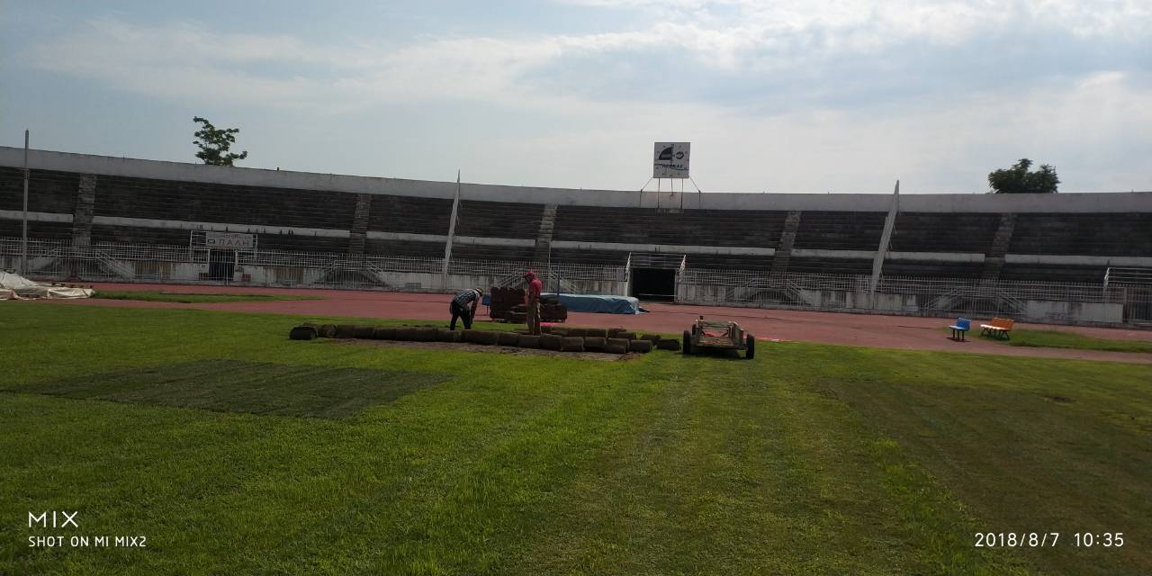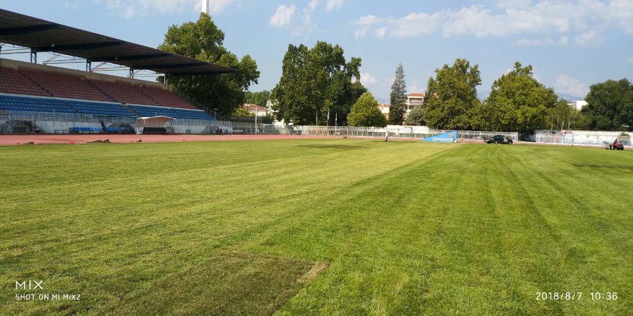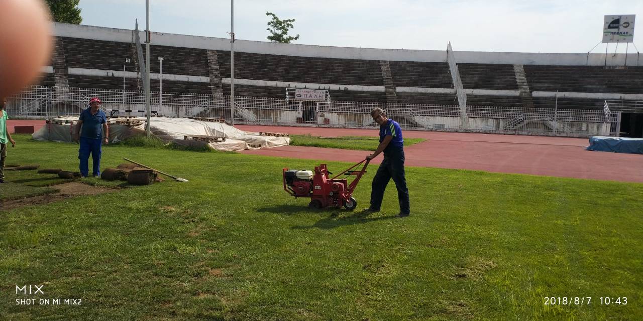 Ολοκληρώθηκαν σήμερα το πρωί οι εργασίες τοποθέτησης νέου χλοοτάπητα στο Δημοτικό Στάδιο Τρικάλων.
