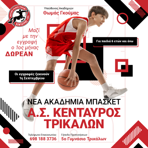 Η νέα ακαδημία μπάσκετ του Α.Σ. Κένταυρος Τρικάλων είναι εδώ!