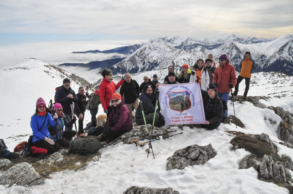 Στο χείλος της κορυφογραμμής, αέρινο το μονοπάτι πάνω από γκρεμούς αβυσσαλέους. Από τη μια τα βράχια από την άλλη χιόνια πολλά μέχρι τη ρίζα. Μικρό το μπόι μας μπροστά στο μεγαλείο.