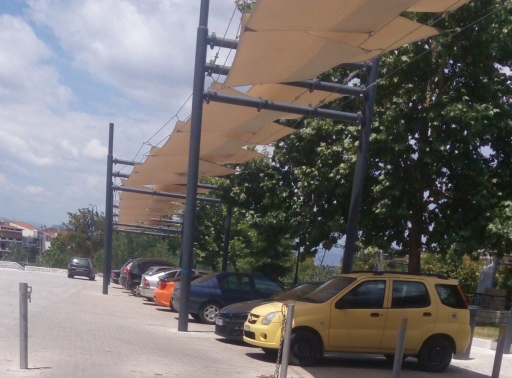Επί μήνες συνεχίζεται το φαινόμενο συμπολίτες να σταθμεύουν τα αυτοκίνητά τους στον… σκιερό χώρο που δημιουργούν τα πανιά, τα οποία τοποθετήθηκαν στο πλαίσιο της Βιοκλιματικής Ανάπλασης, στο κέντρο της Λάρισας.